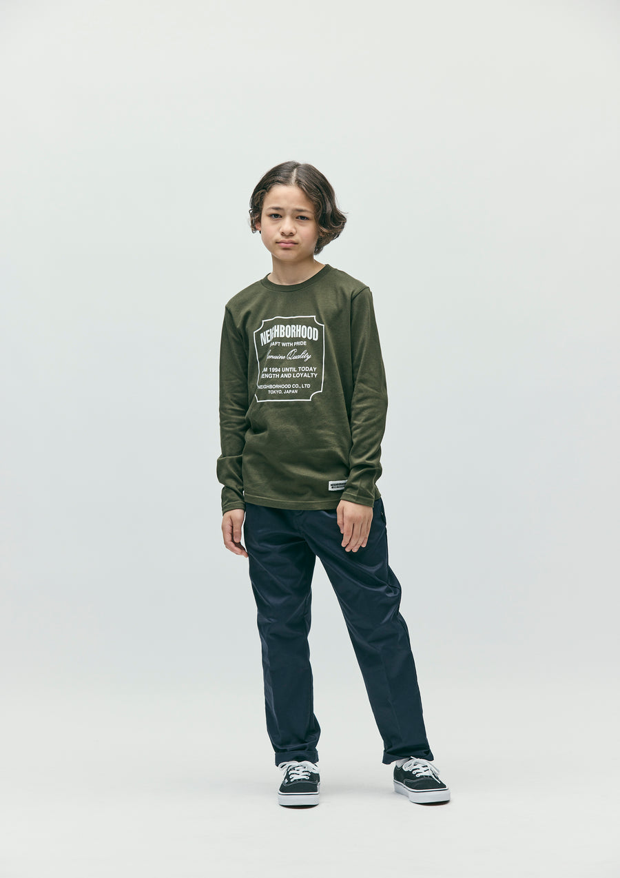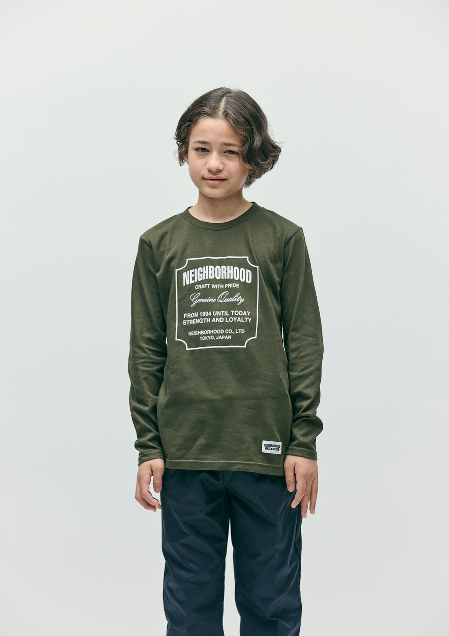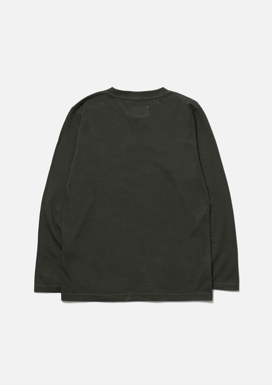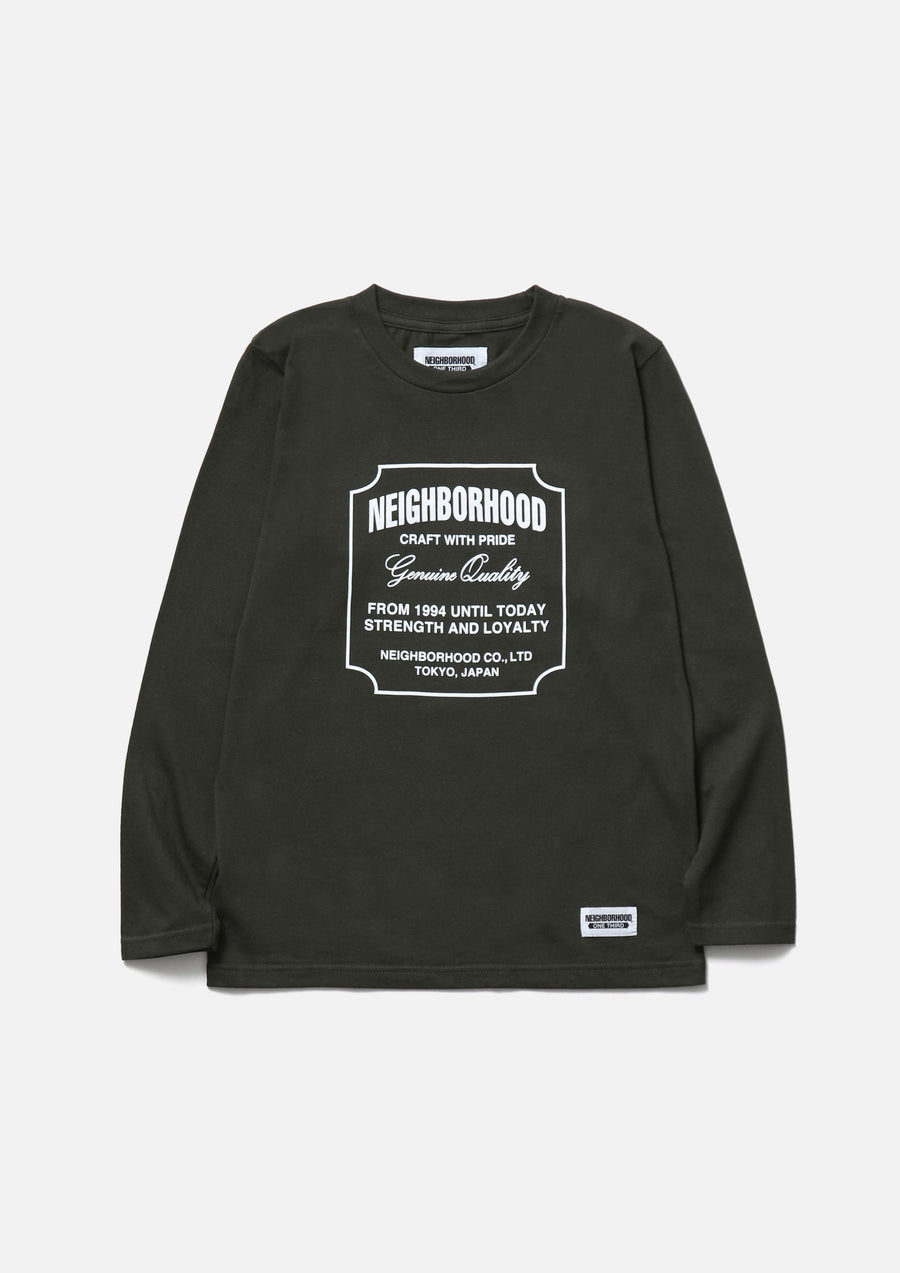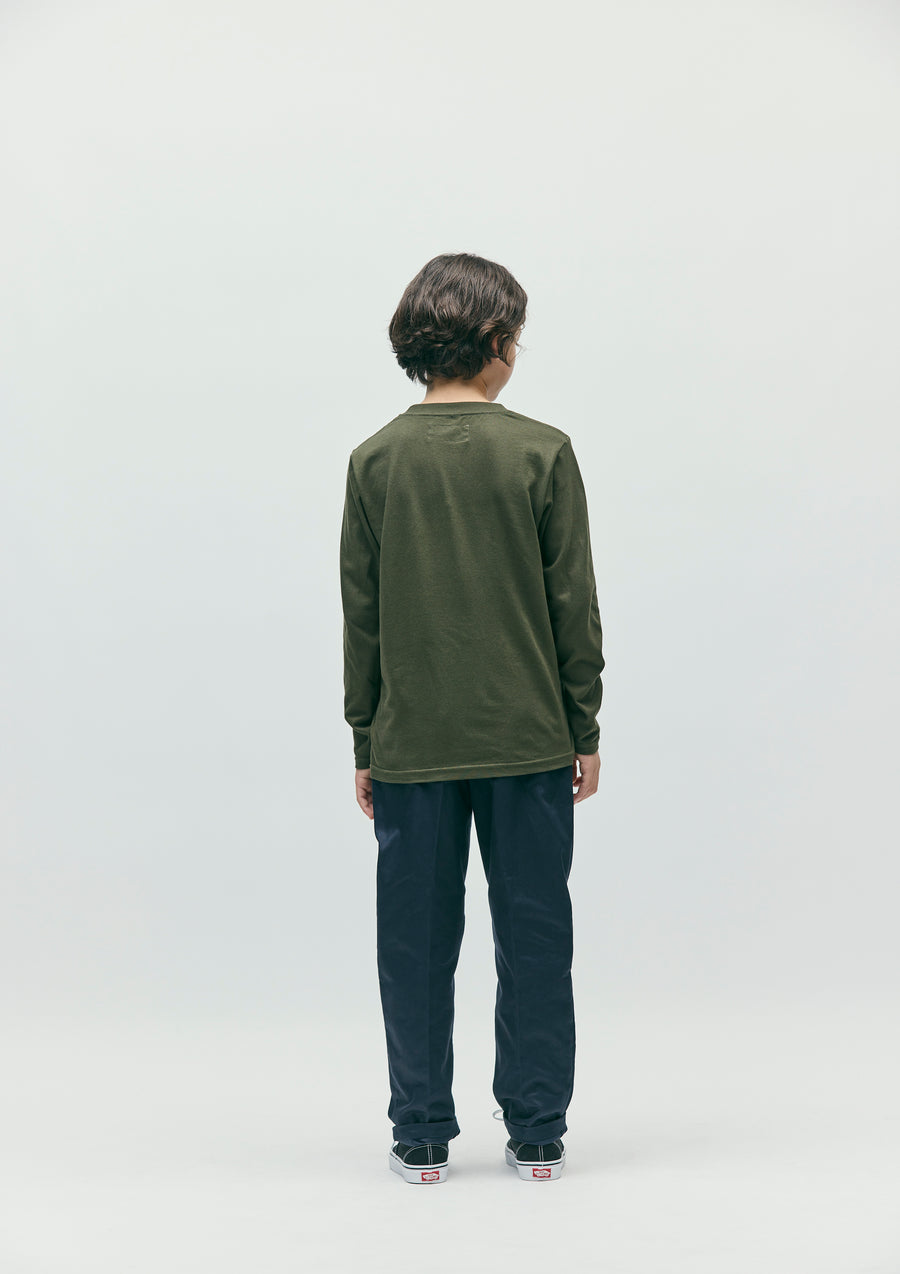 5.6ozのヘビーウェイトボディーを使用したロングスリーブTシャツ。フロントにグラフィックをプリント。左裾にネームタグを配置。