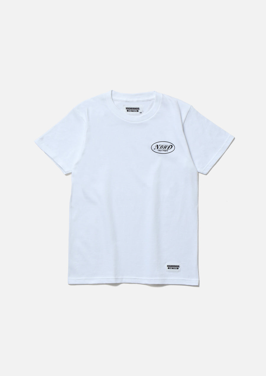 5.6ozのヘビーウェイトボディーを使用したショートスリーブTシャツ。左胸と背面にグラフィックをプリント。左裾にネームタグを配置。