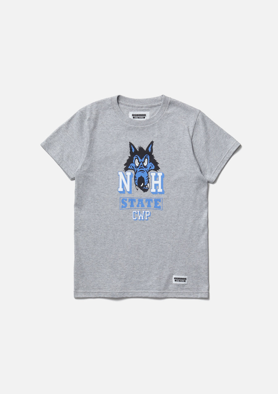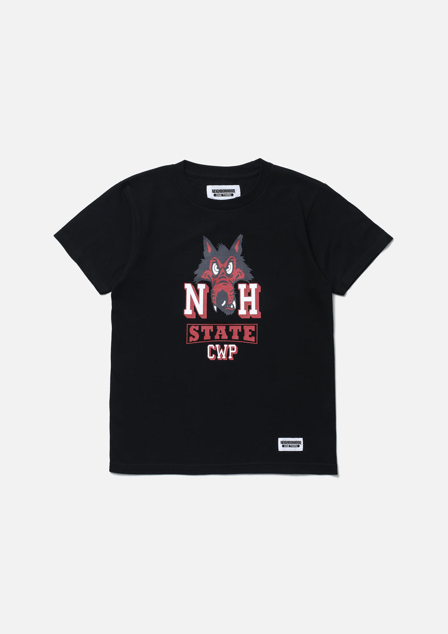 5.6ozのヘビーウェイトボディーを使用したショートスリーブTシャツ。フロントにグラフィックをプリント。左裾にネームタグを配置。