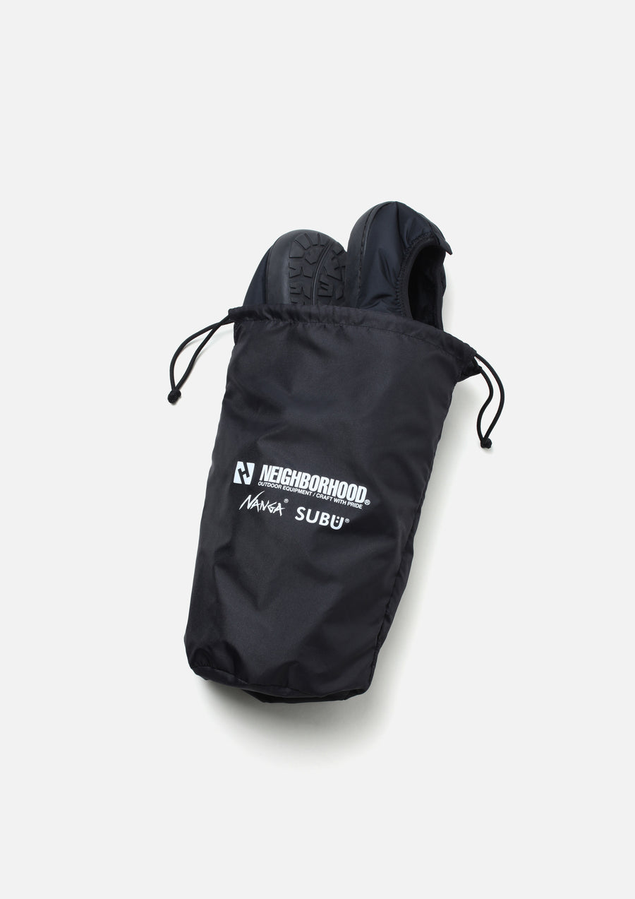 アッパーにNANGA独自のファブリック"オーロラテックス®"を採用した、SUBUの新しいルームシューズVAMP。アッパーにロゴ刺繍をを配置。NANGA、SUBUとのジョイントワークアイテム。
