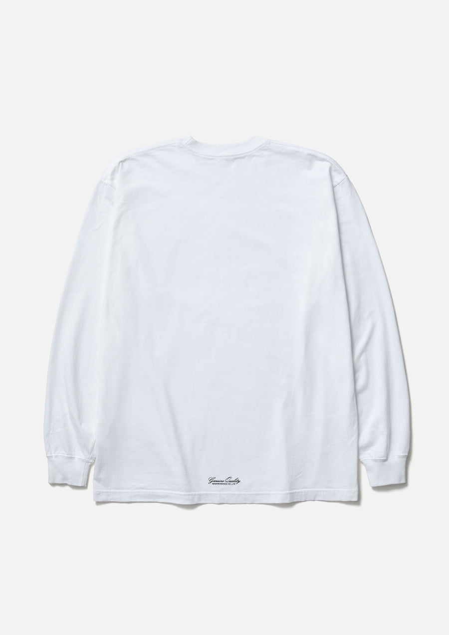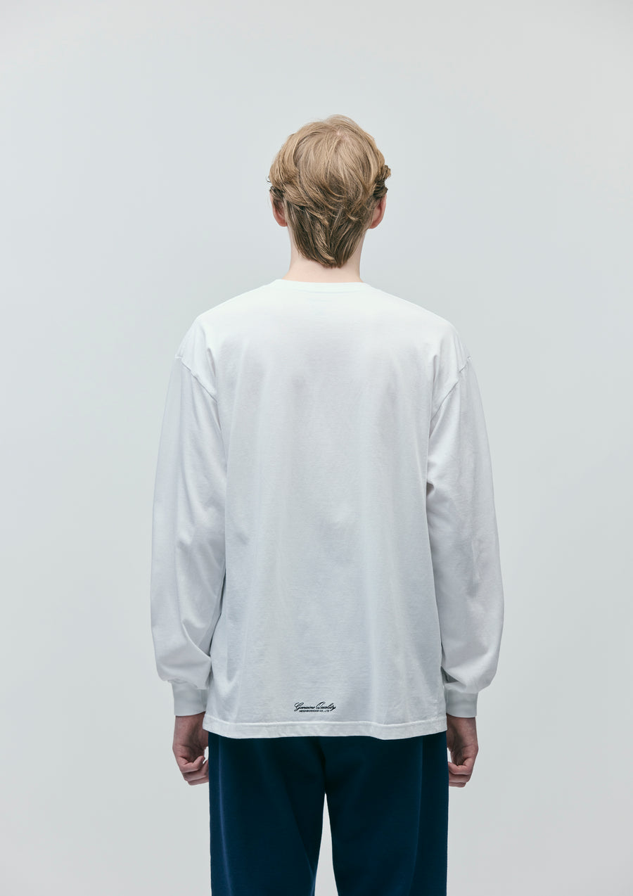 コットン天竺のオリジナルボディーを使用したロングスリーブTシャツ。フロントにロゴをプリント。ワンウォッシュ。