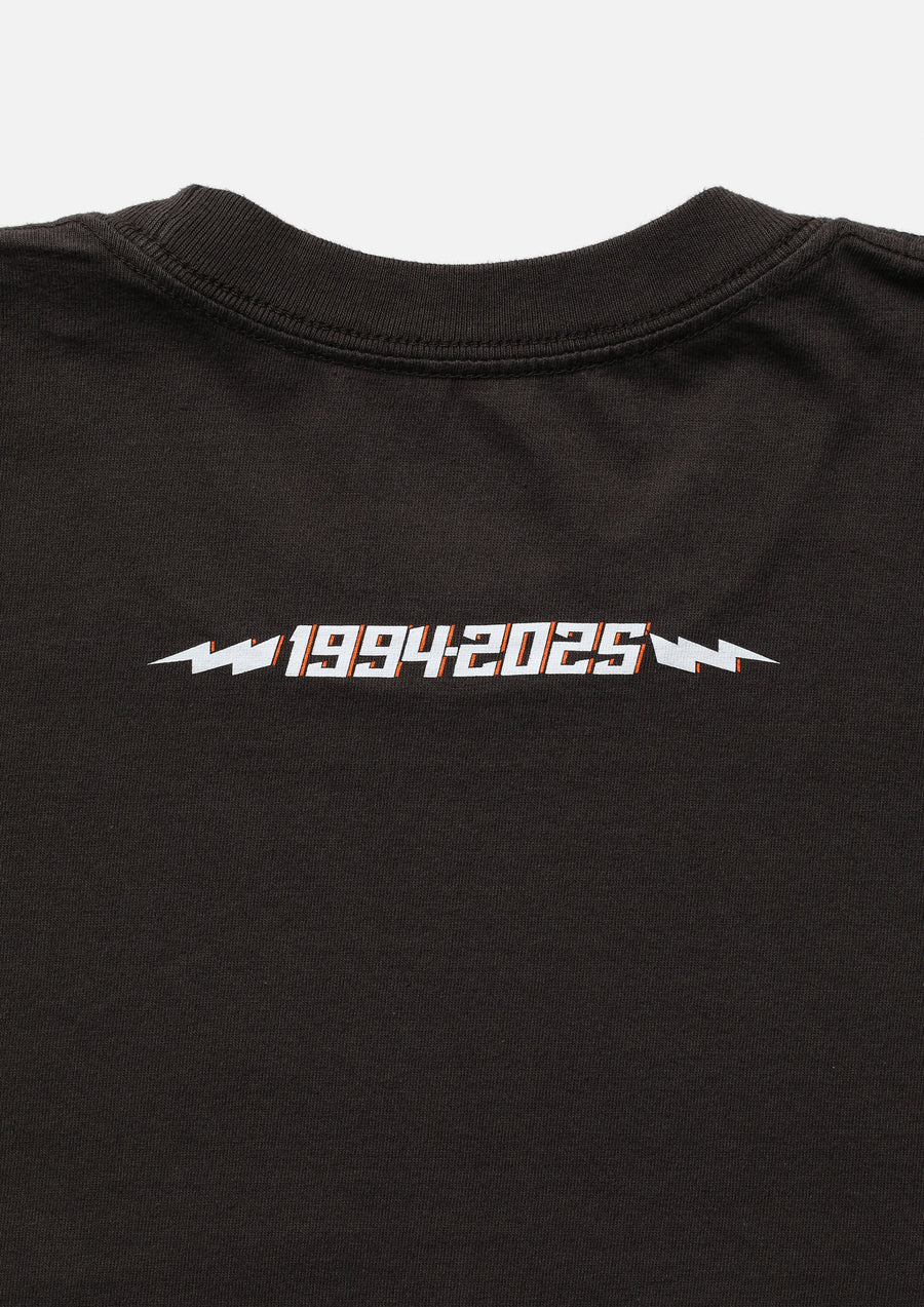コットン天竺のオリジナルボディを使用したロングスリーブTシャツ。グラフィックをプリント。ワンウォッシュ仕上げ。
