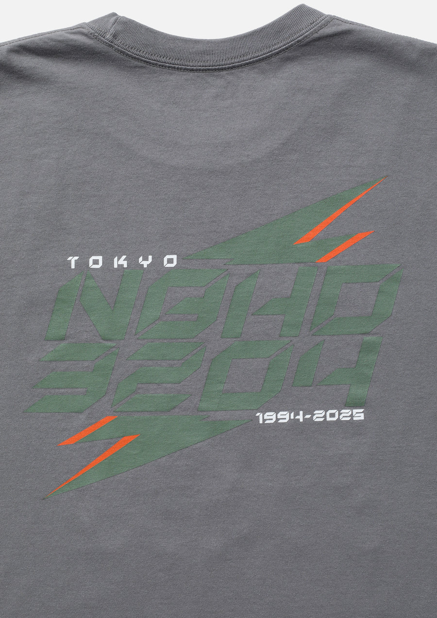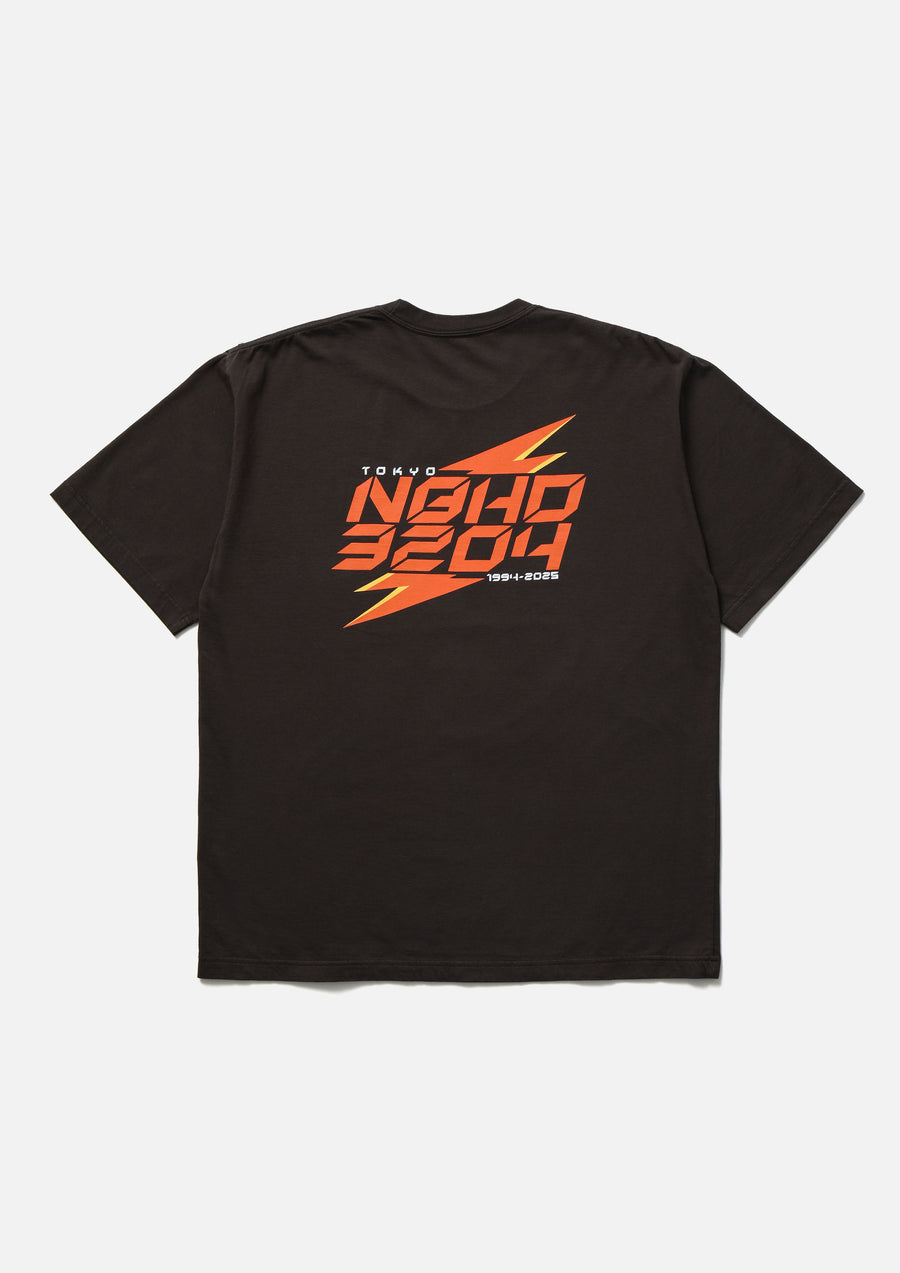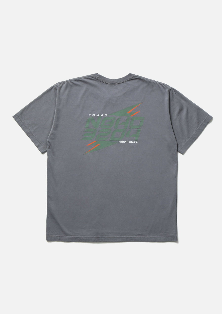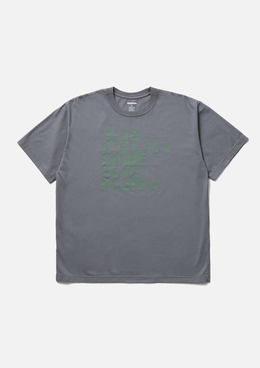 コットン天竺のオリジナルボディを使用したショートスリーブTシャツ。グラフィックをプリント。ワンウォッシュ仕上げ。