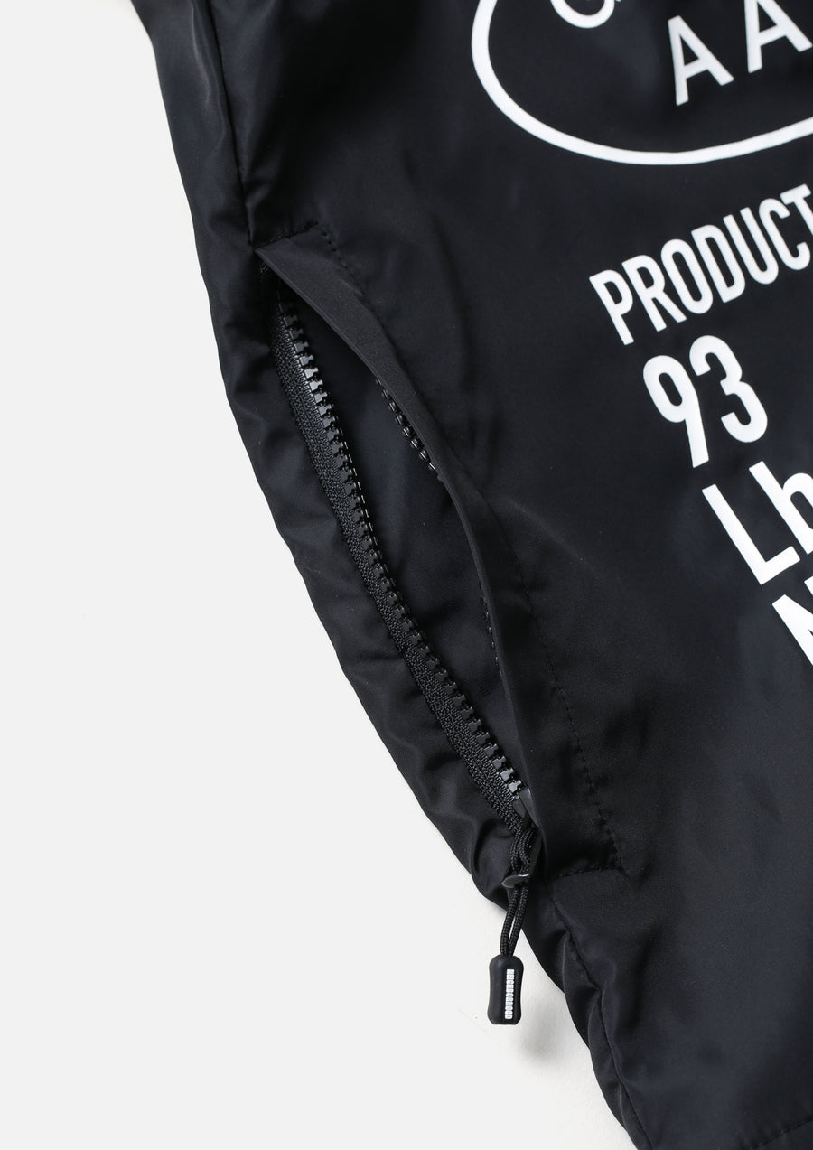 適度な保温性と防風性、強度を備えるオイルドライクな表情のナイロンタフタ素材を使用したウィンドブレーカージャケット。ロゴとグラフィックをプリント。オリジナルのスナップボタン、ジッパープルを採用。左裾にブランドタグを配置。裏地は、通気性を確保した接結天竺素材と、制電性のあるポリエステルタフタを身頃と袖で使い分けた仕様。脇接ぎにピスネームを付属。Yohji Yamamoto POUR HOMMEとのコラボレーション。