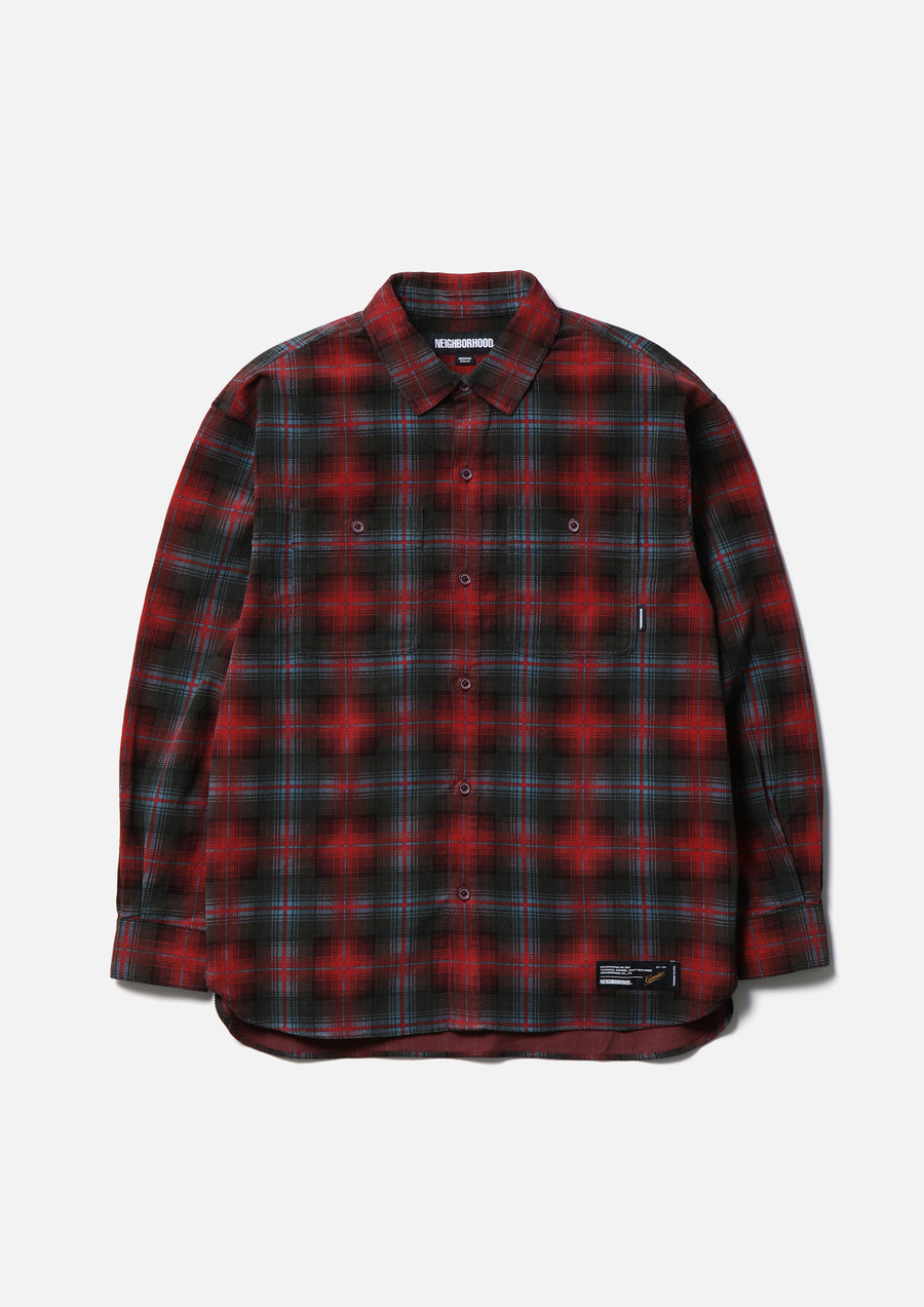 16ウェルコールを染色し、オリジナルチェック柄をプリントしたコーデュロイチェックシャツ。裾はラウンド仕様。オリジナルの四つ穴ボタンを採用し、左裾にネームタグ、ポケット脇にピスネームを付属。ワンウォッシュ。