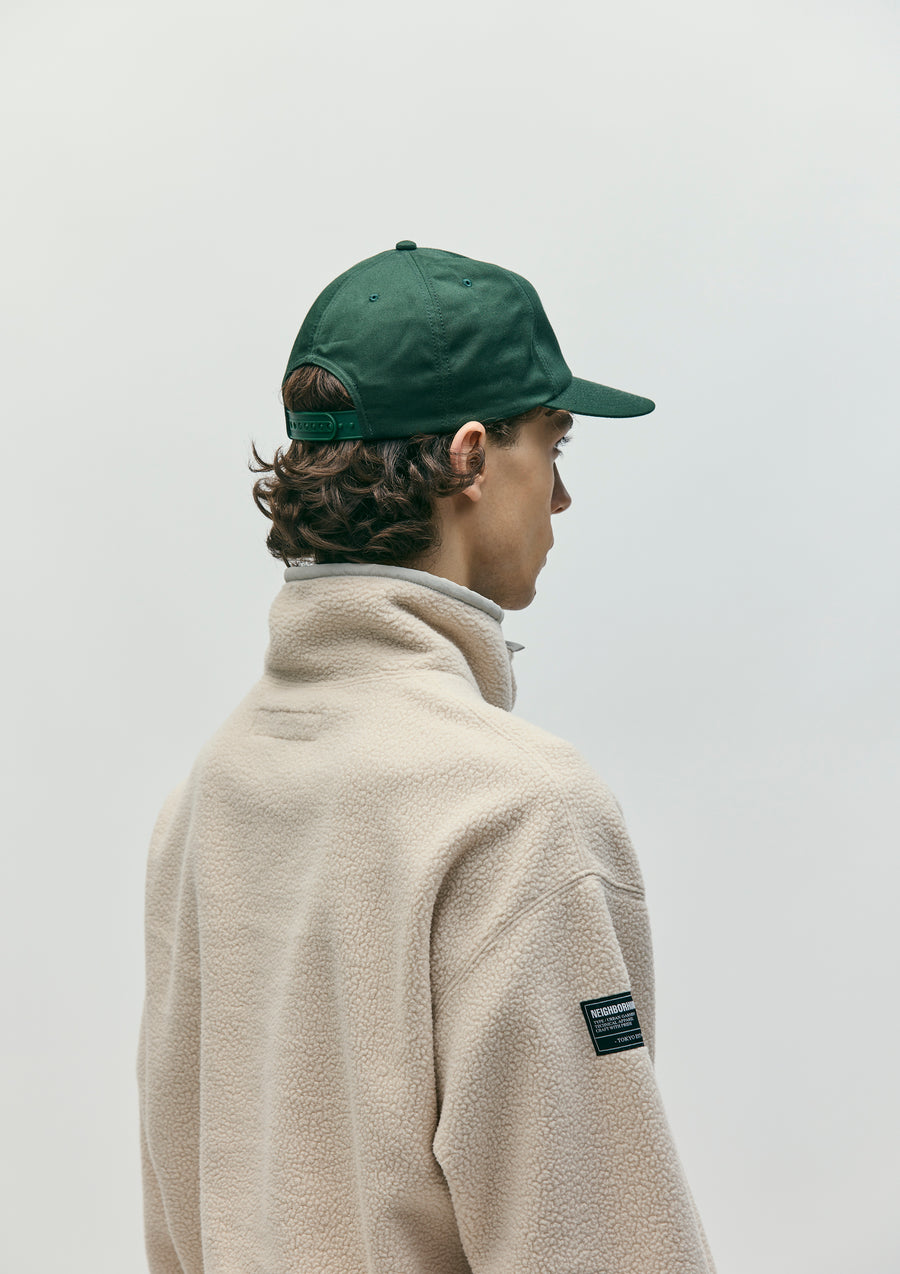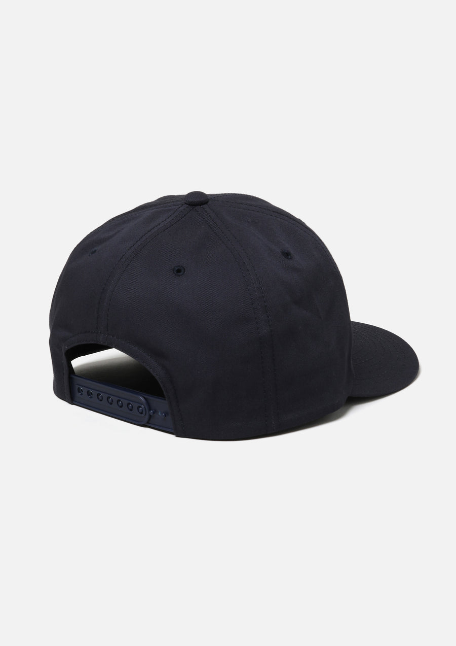 高密度のチノクロス素材を使用したベースボールキャップ。フロントにロゴを刺繍。スナップバック仕様。左サイドにはピスネームを付属。