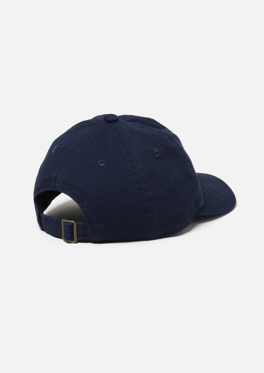 コットンツイル素材を使用したダッドキャップ。フロントにロゴを刺繍。左サイドにはピスネームを付属。