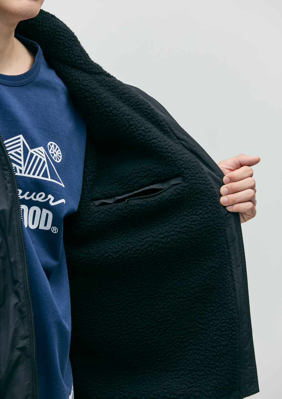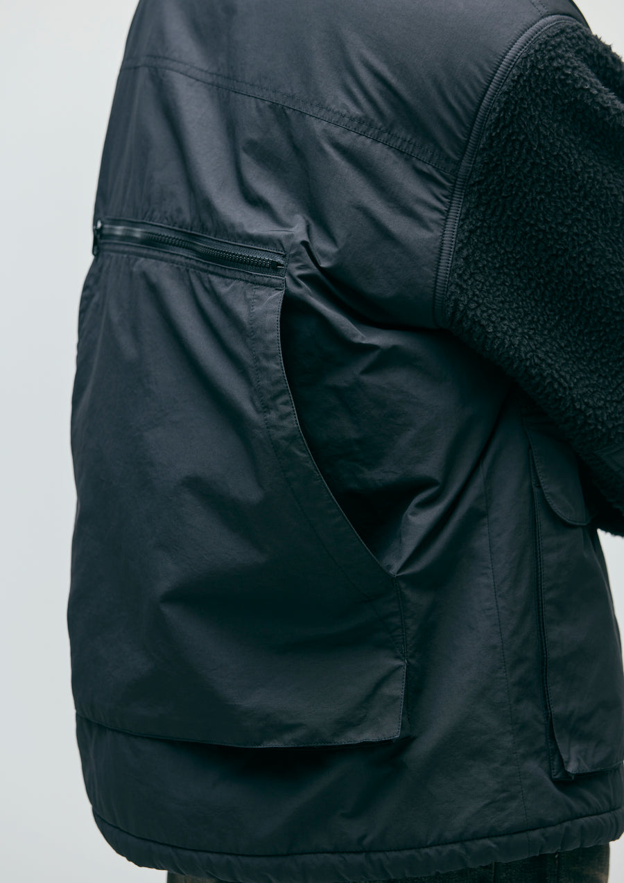 綿のような質感のコットンナイロンタフタ素材と、程よいソフトさのボアフリース素材を組み合わせたフィッシングジャケット。両サイドに配置したユーティリティポケット、Dカン付きの胸ポケット、背面のマップポケットなど、当時のディテールを踏襲。袖口はリブ仕様。左胸にコラボレーションネーム、サイドシームにピスネームを付属。1920年創業のアメリカ・シアトル発アウトドアブランドEddie Bauerとのジョイントワークアイテム。
