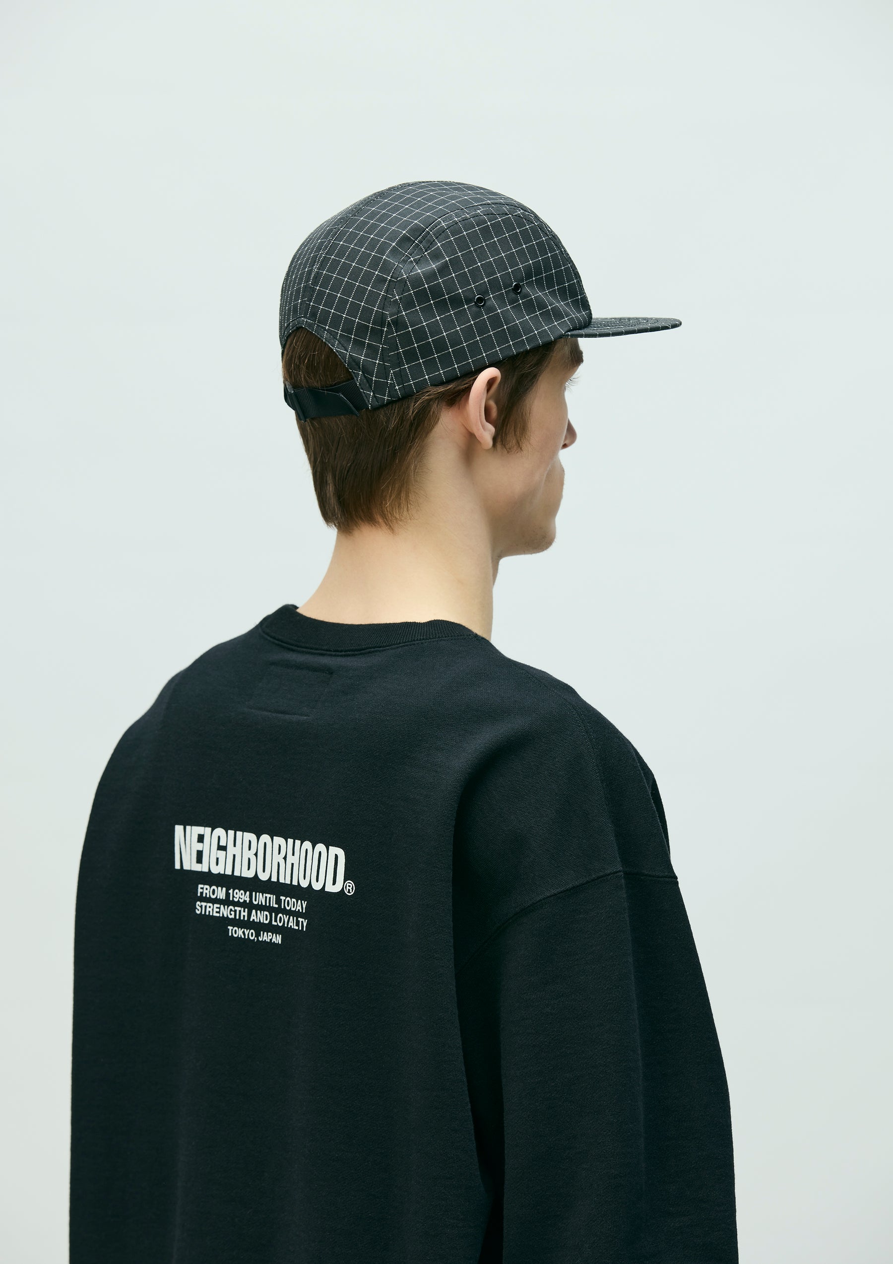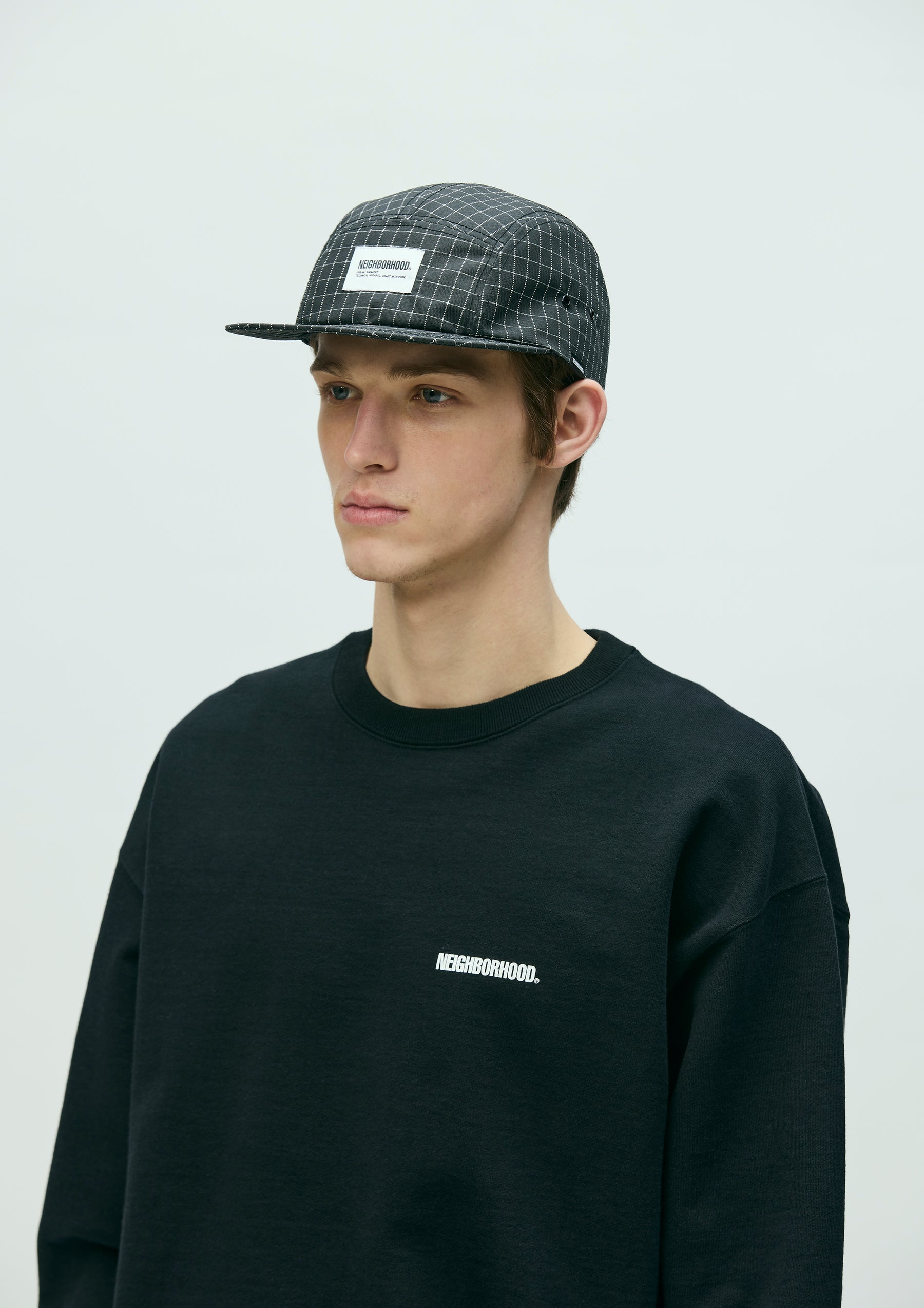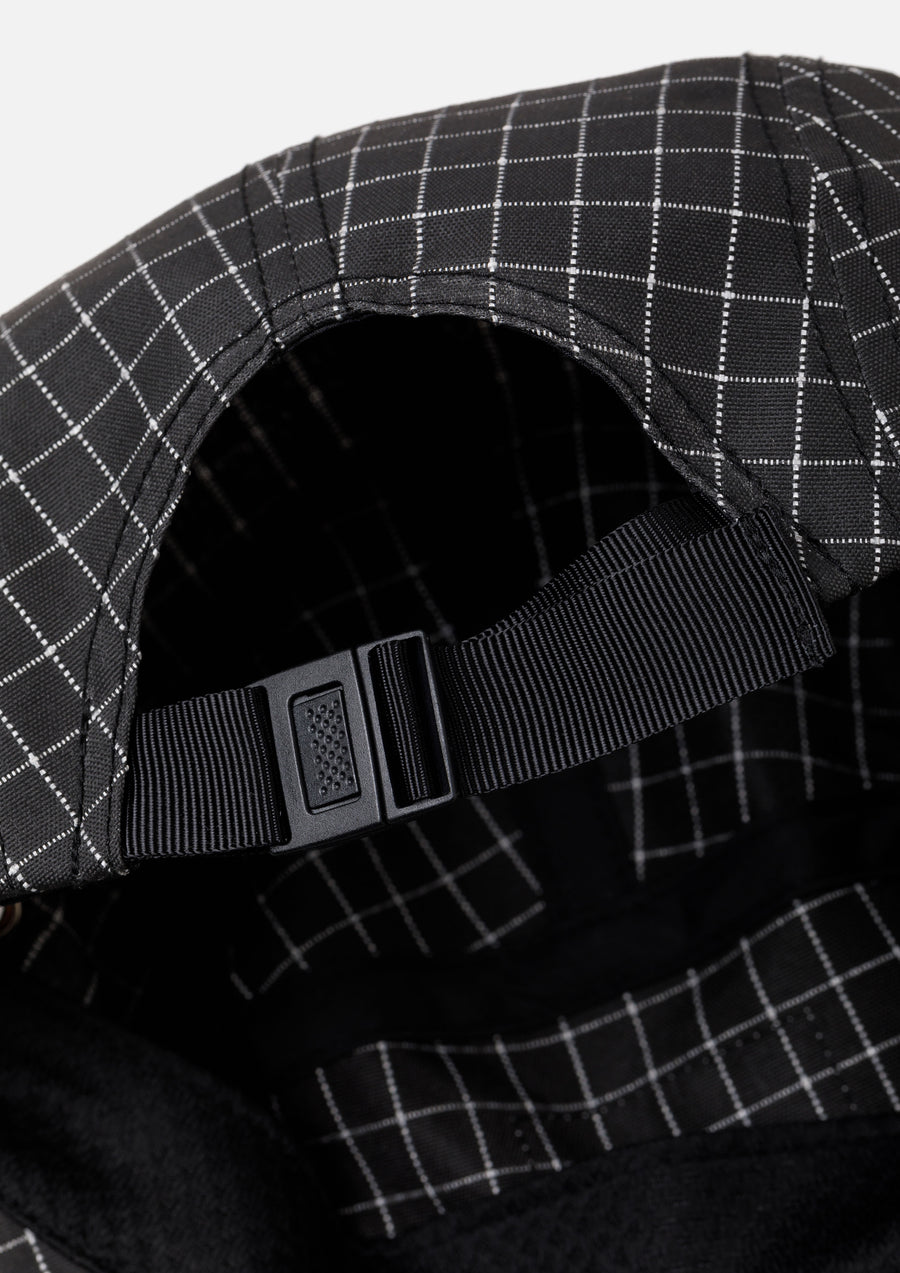 オリジナルのリフレクティブリップストップ素材を使用したジェットキャップ。リフレクター糸を使用した視認性の良さに加え、表面を撥水加工、裏面はアクリルコーティングを施すことで耐久性と撥水性、安全性を確保したオリジナルテキスタイル。フロントにブランドタグを配置。後部に調節用のアジャスター。左サイドにピスネームを付属。