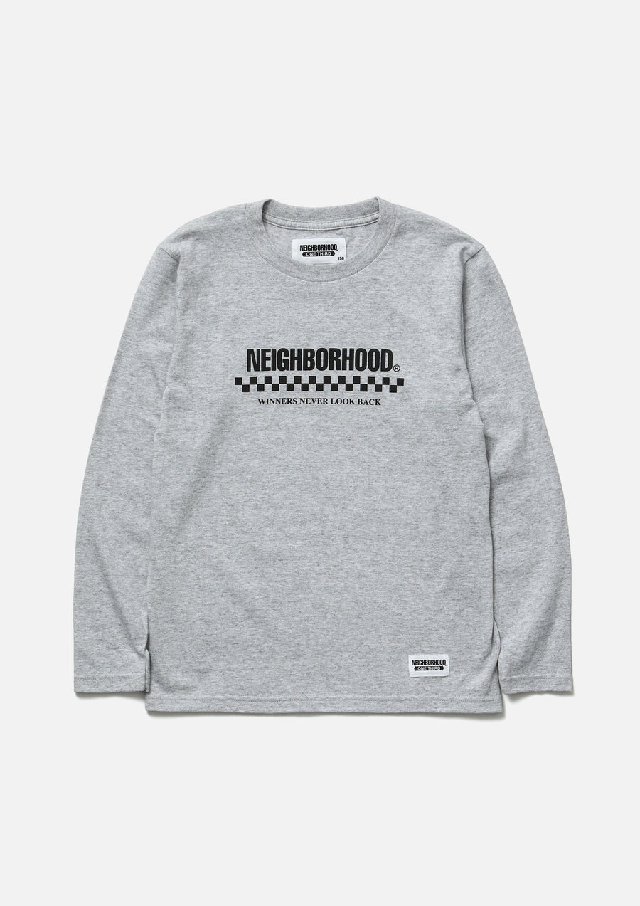 5.6ozのヘビーウェイトボディーを使用したロングスリーブTシャツ。正面にロゴをプリント。左裾にブランドタグを配置。