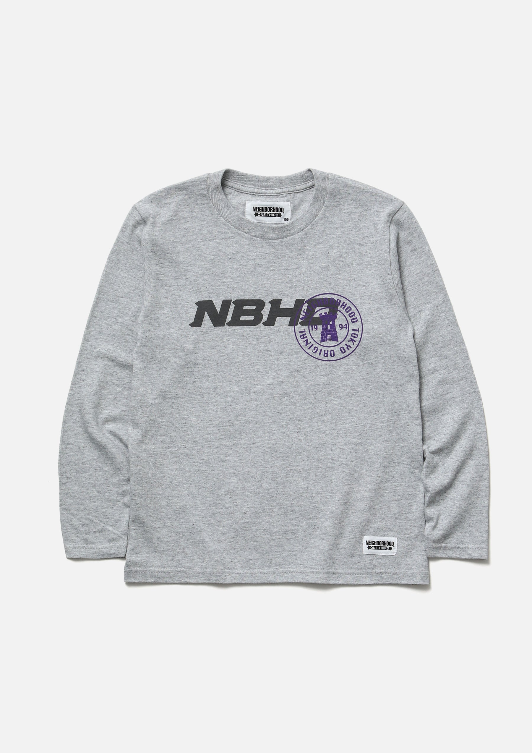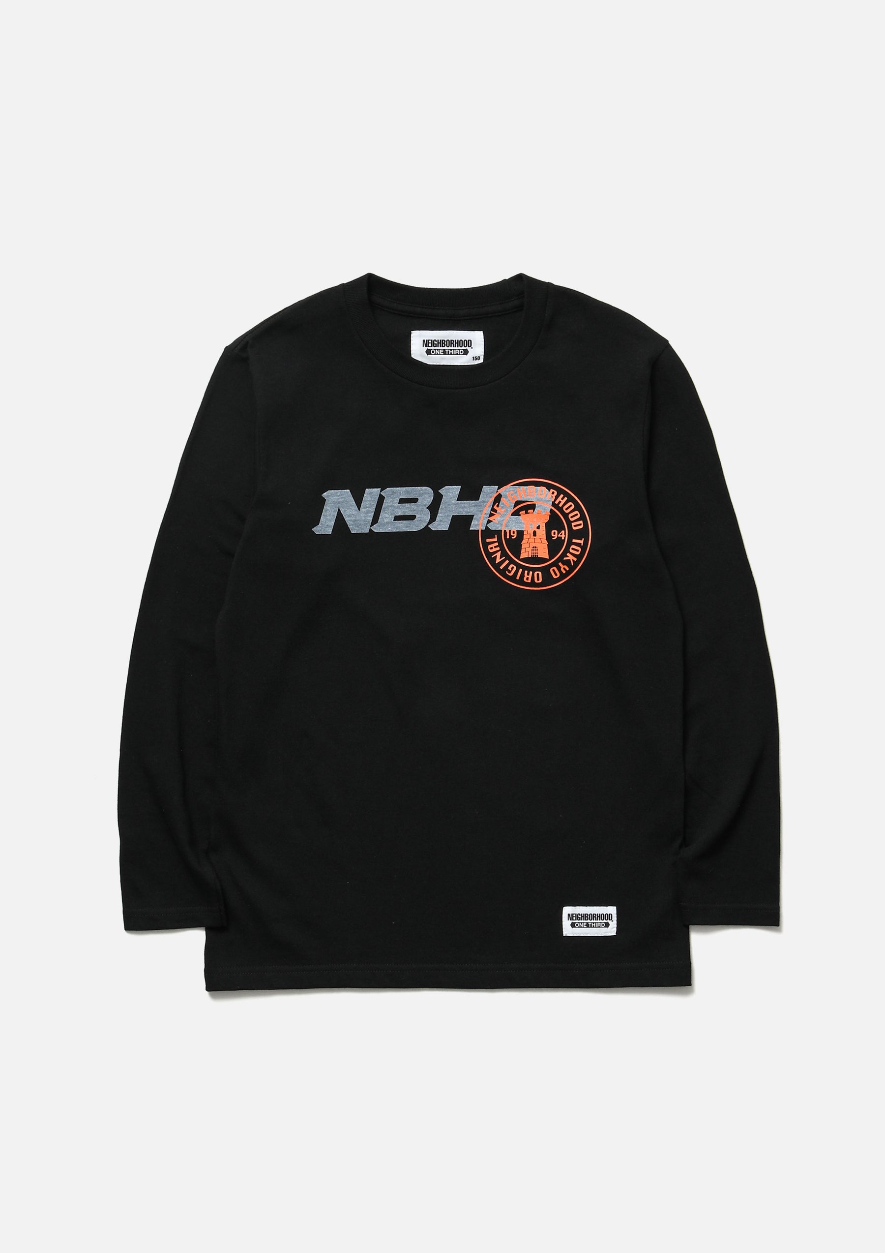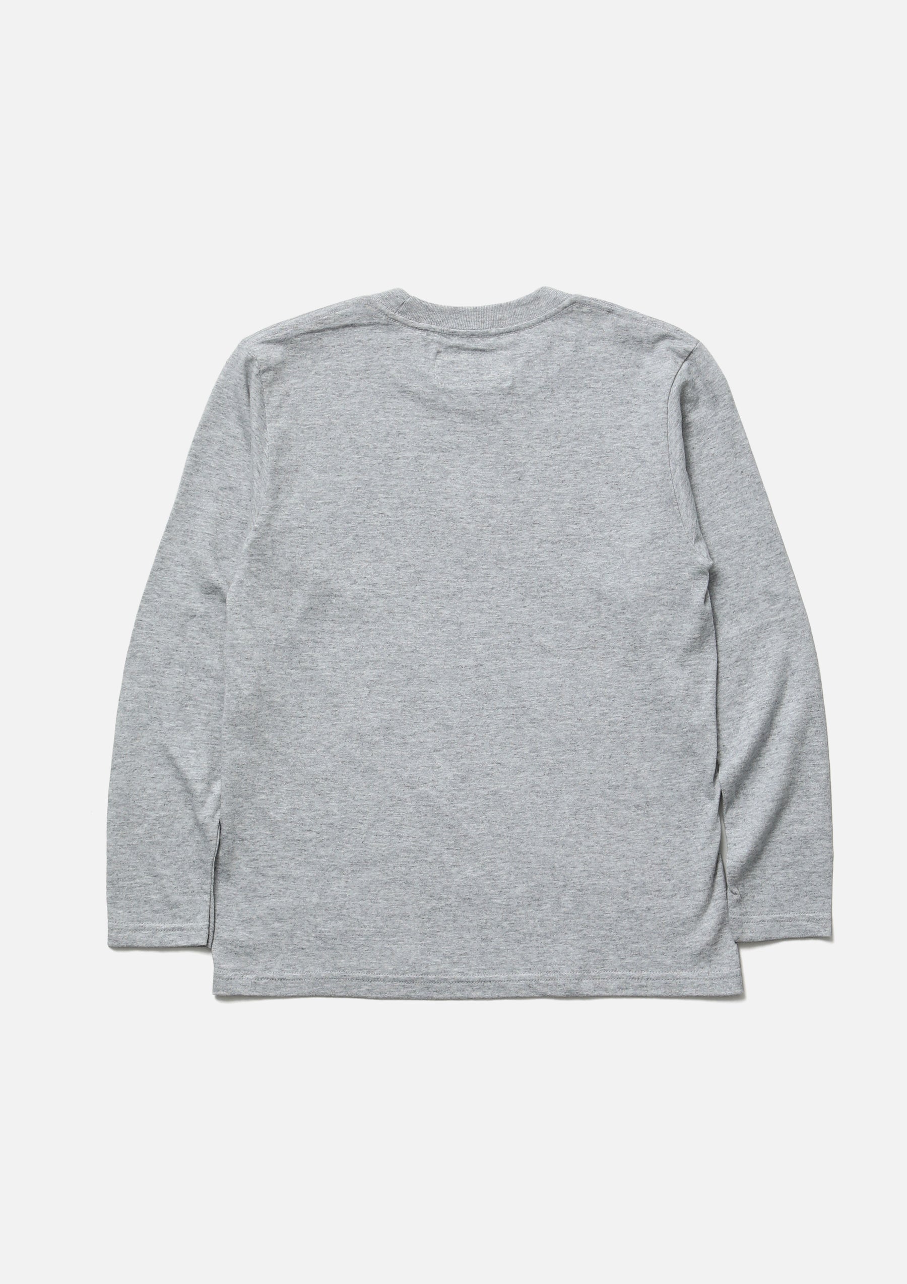 5.6ozのヘビーウェイトボディーを使用したロングスリーブTシャツ。正面にグラフィックをプリント。左裾にブランドタグを配置。