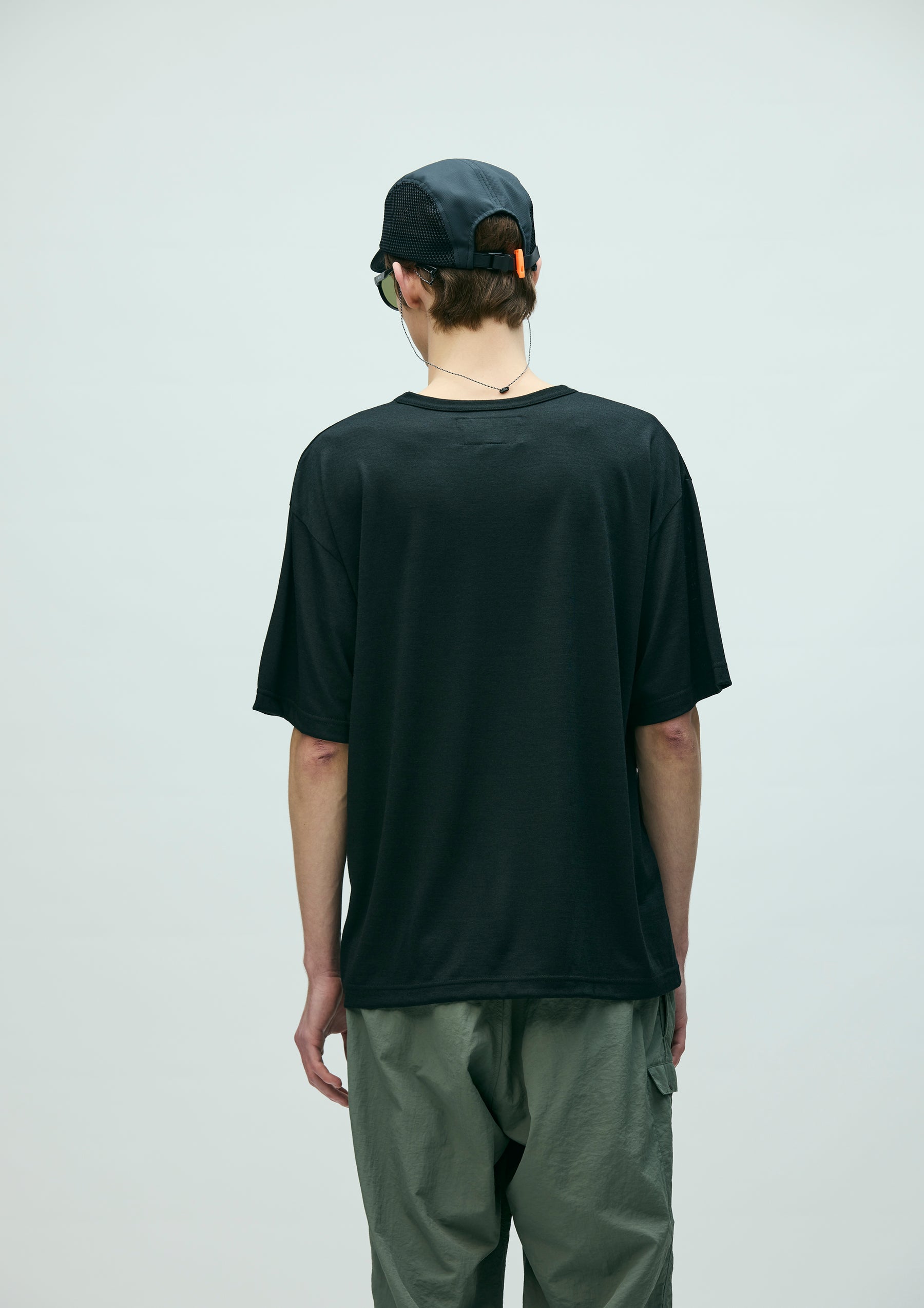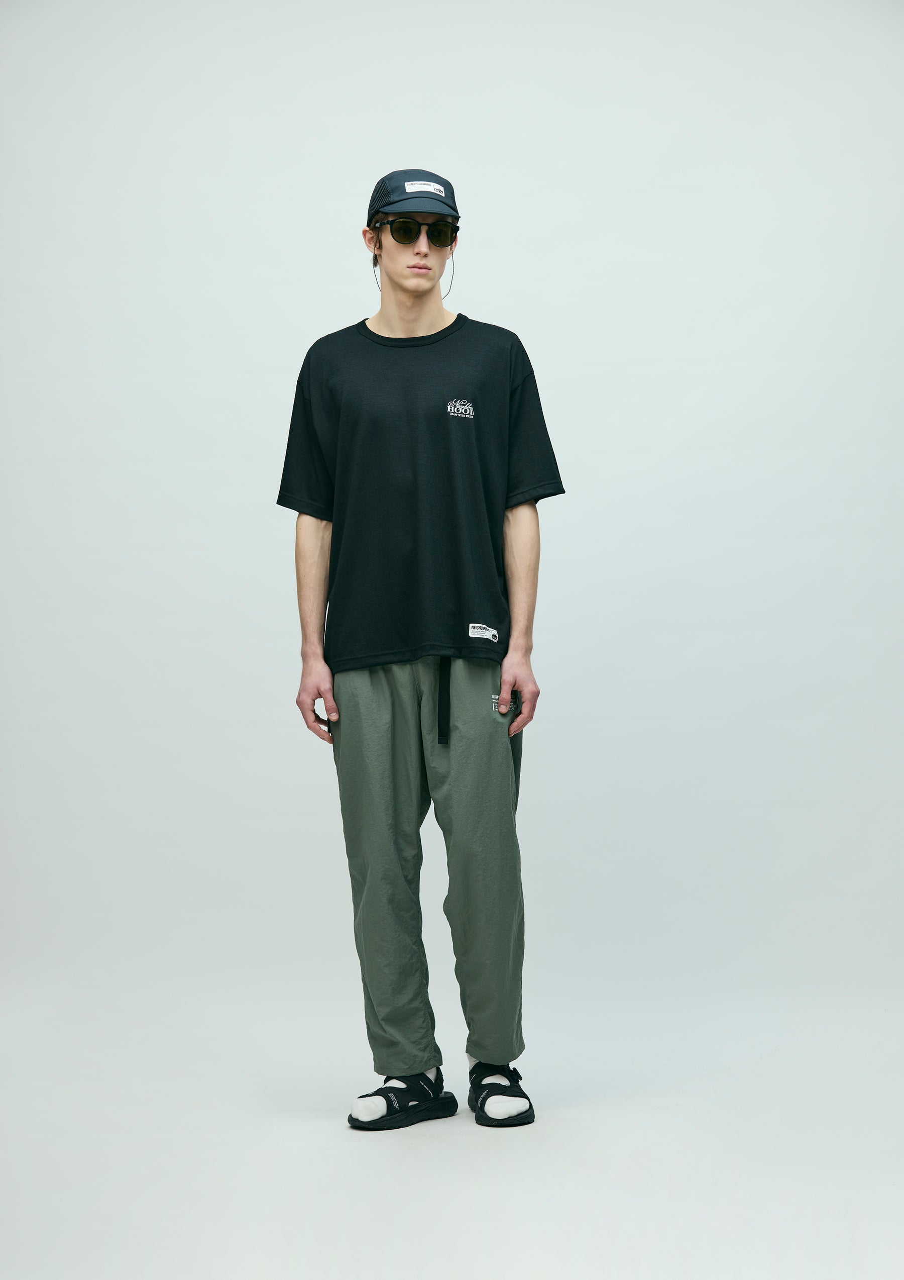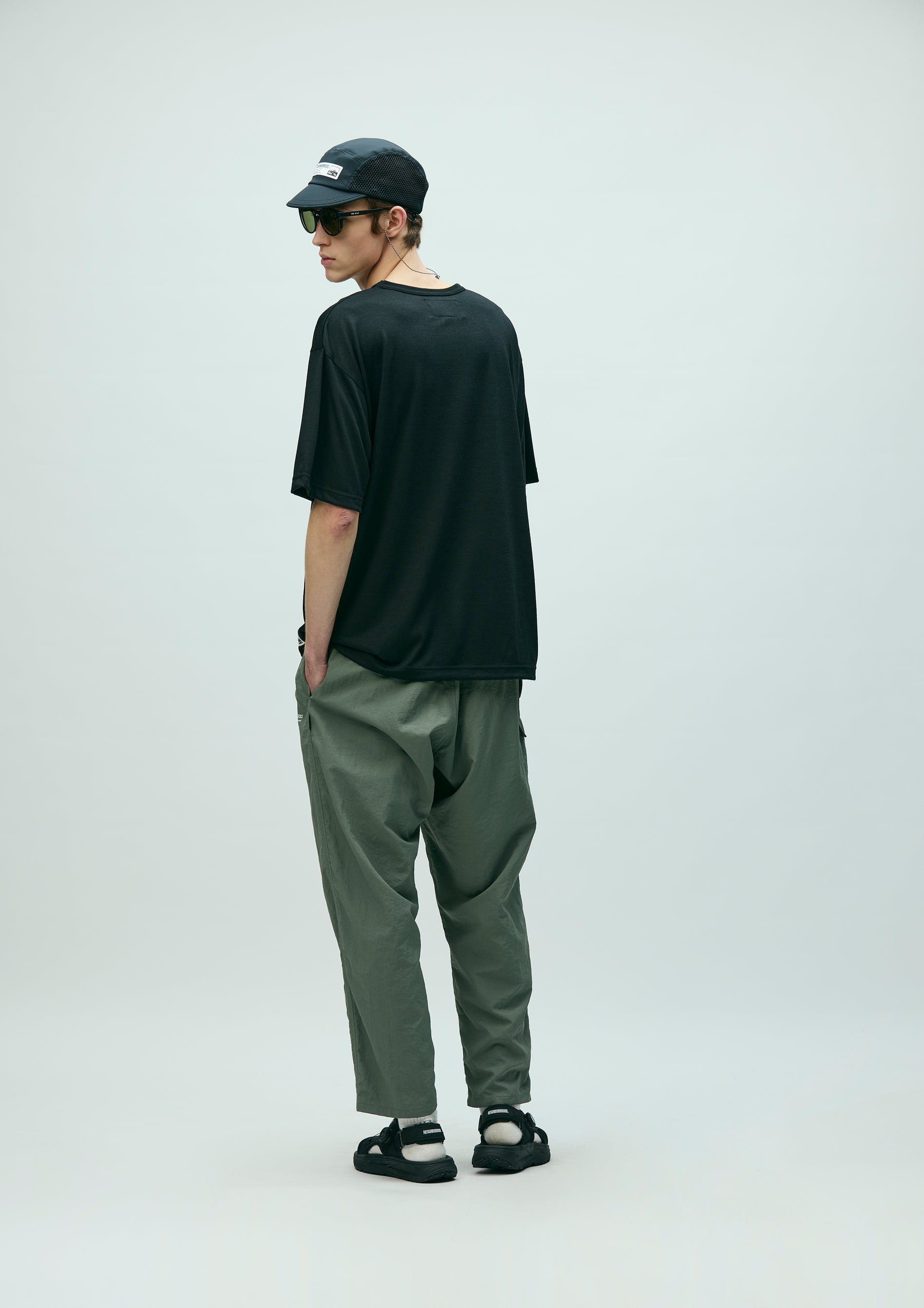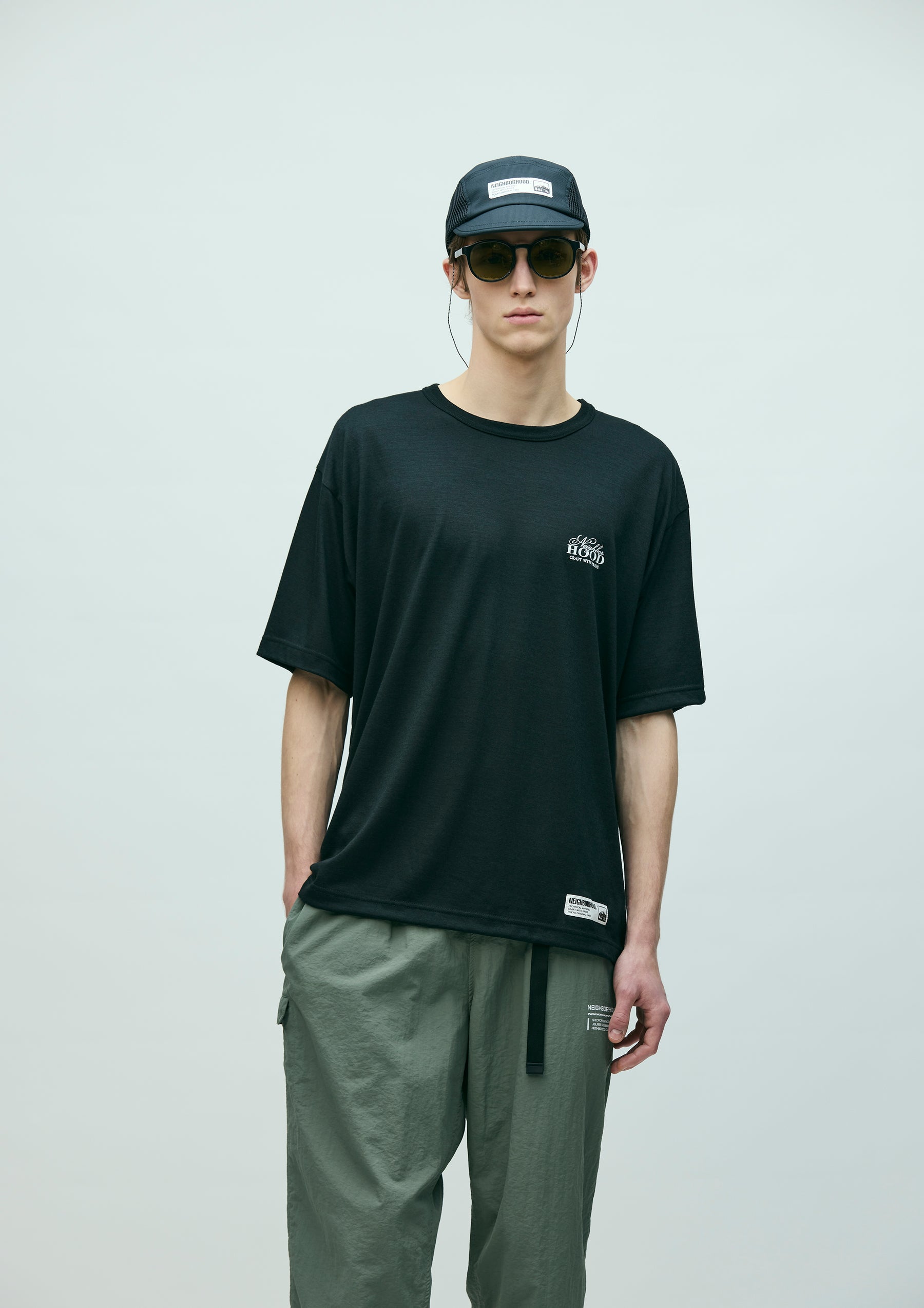 トレイルランやアドベンチャーレースなど、過酷な環境下で求められる、ドライ感・吸湿速乾性・消臭性を高い水準で保持可能なNIKKE AXIO®繊維を使用した半袖のクルーネックカットソー。左胸にロゴをプリント。左裾にブランドタグ、脇接ぎにピスネームを付属。