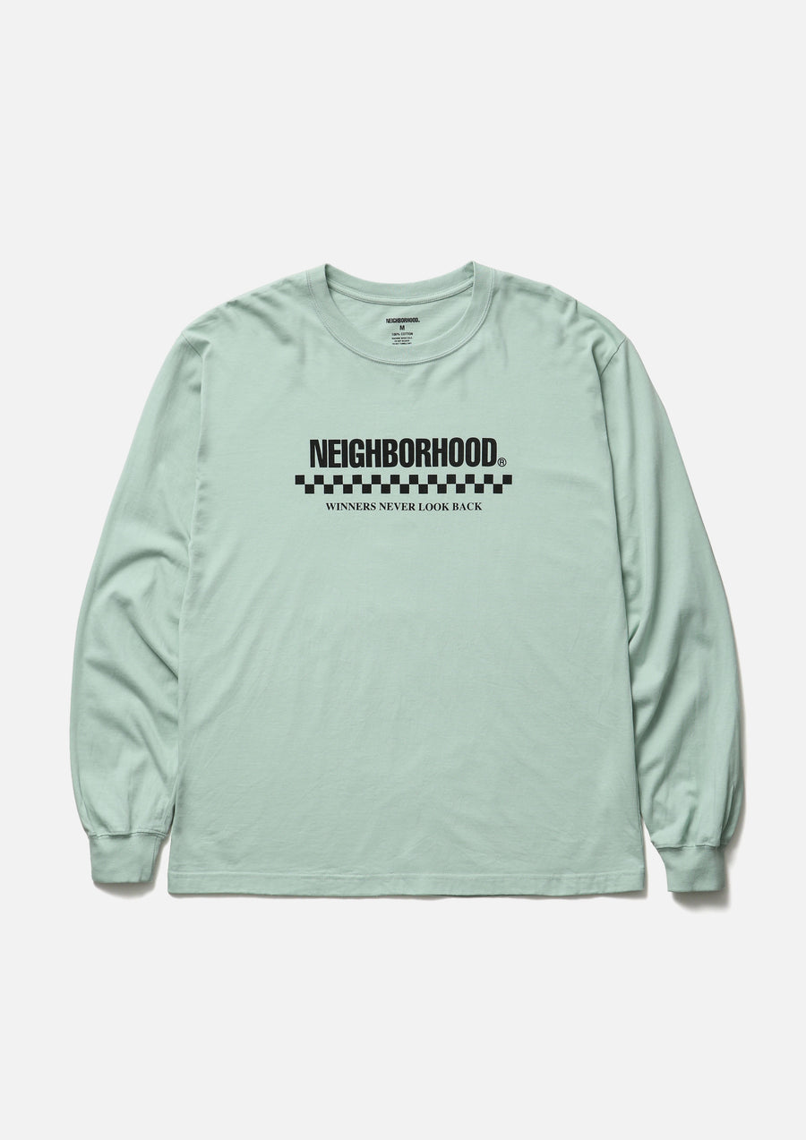 コットン天竺のオリジナルボディを使用したロングスリーブTシャツ。正面にロゴをプリント。ワンウォッシュ仕上げ。