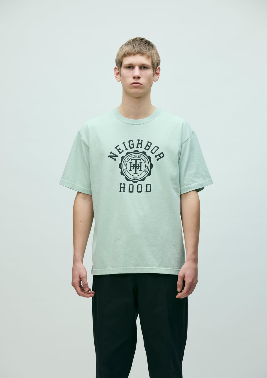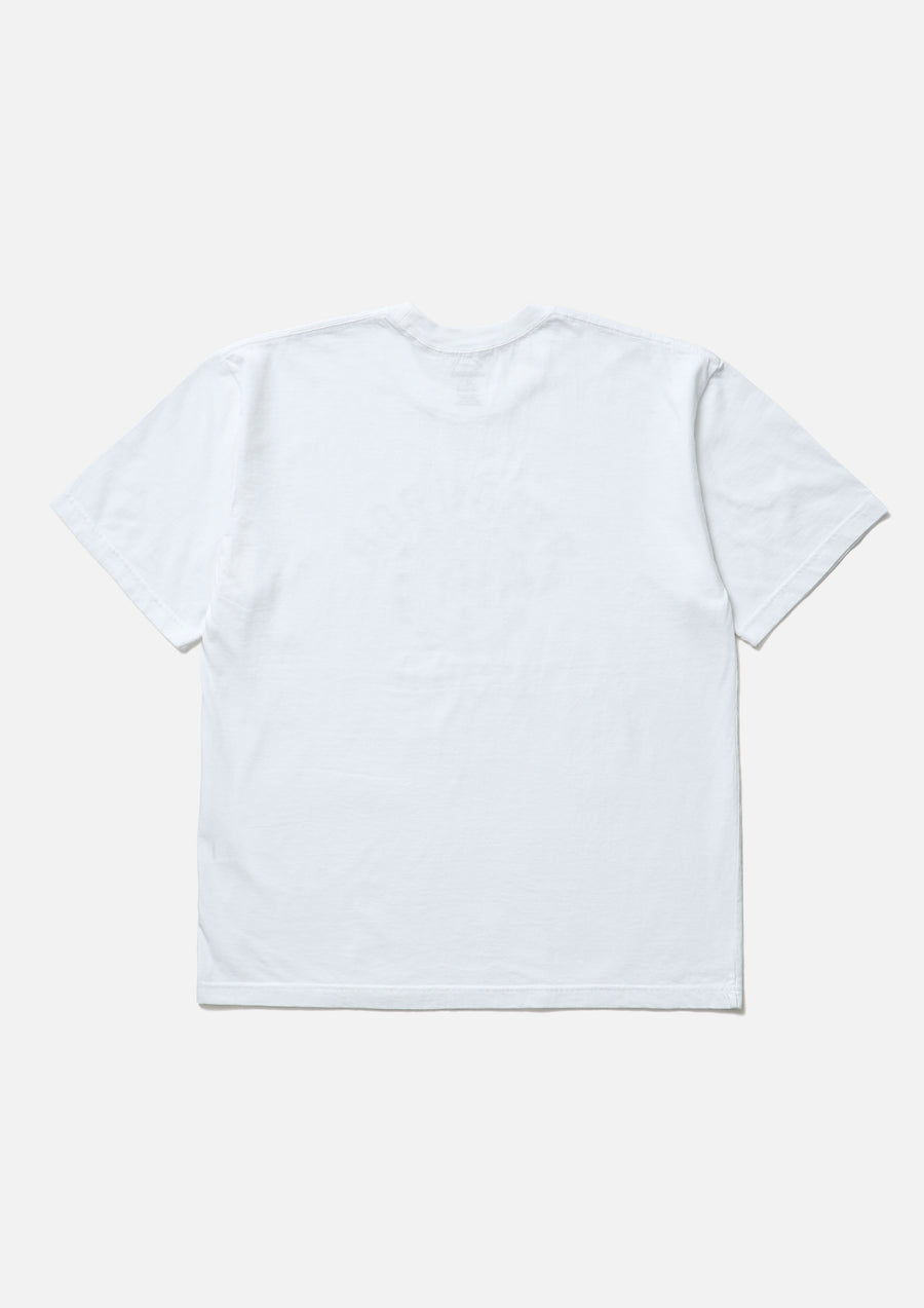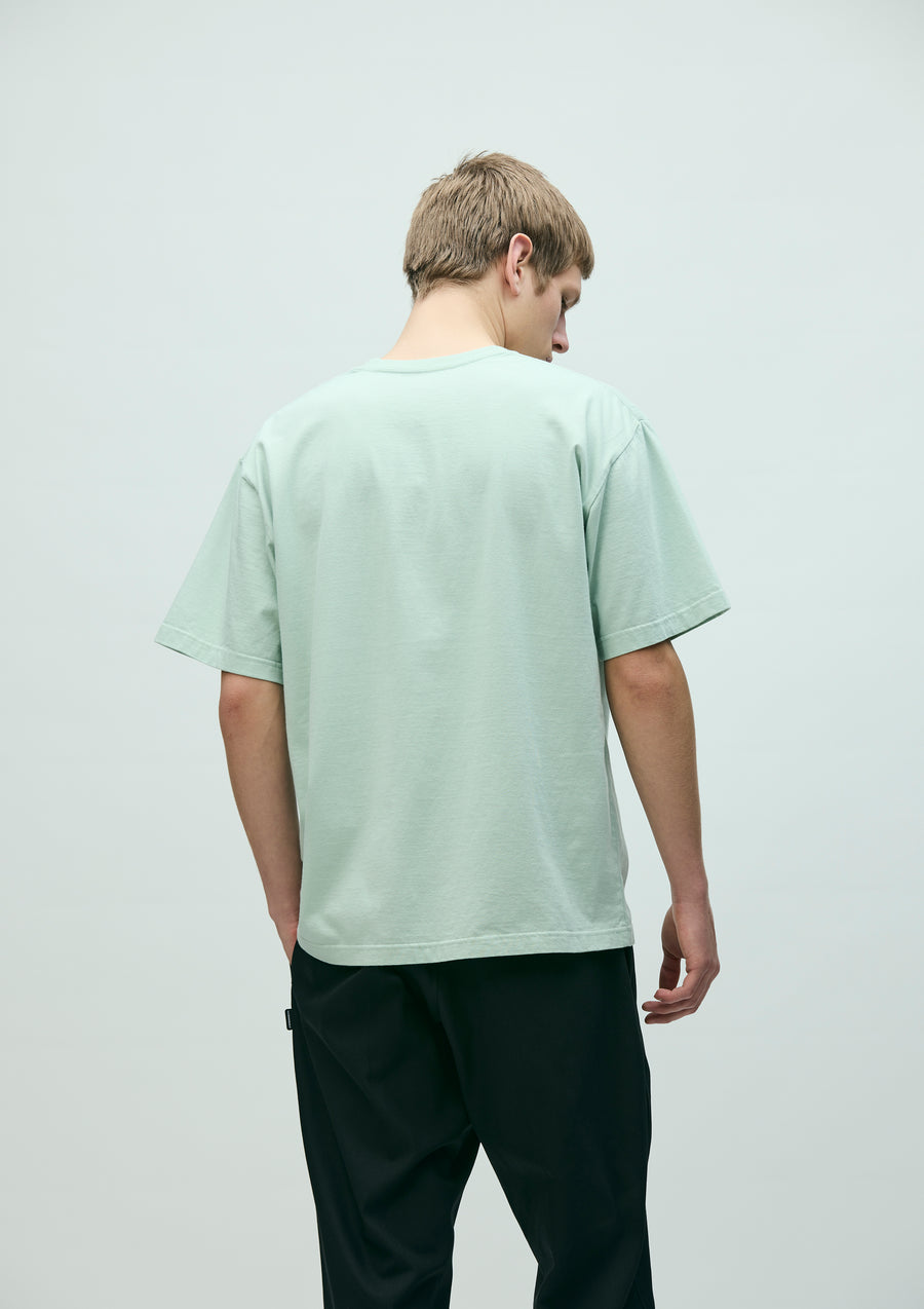 コットン天竺のオリジナルボディを使用したショートスリーブTシャツ。正面にグラフィックをプリント。ワンウォッシュ仕上げ。