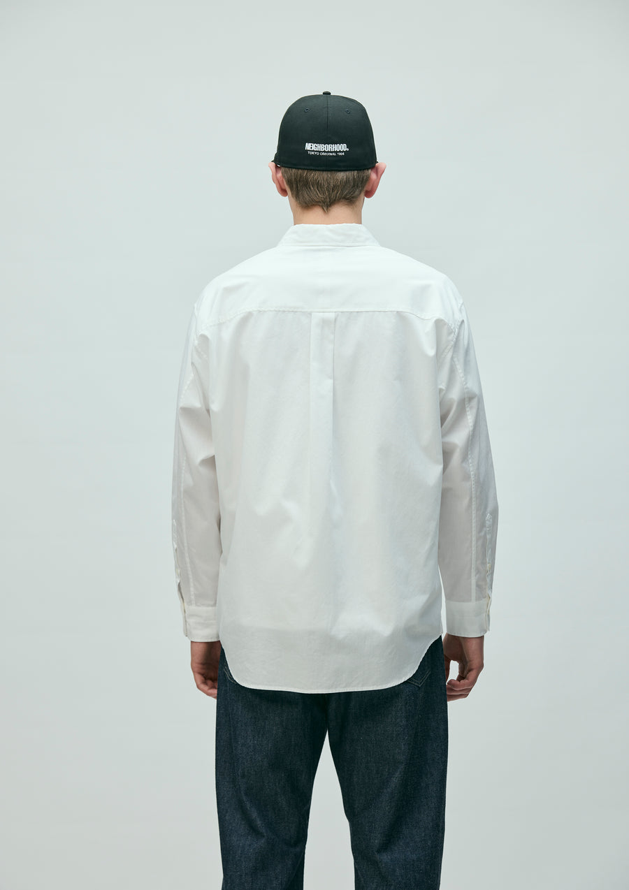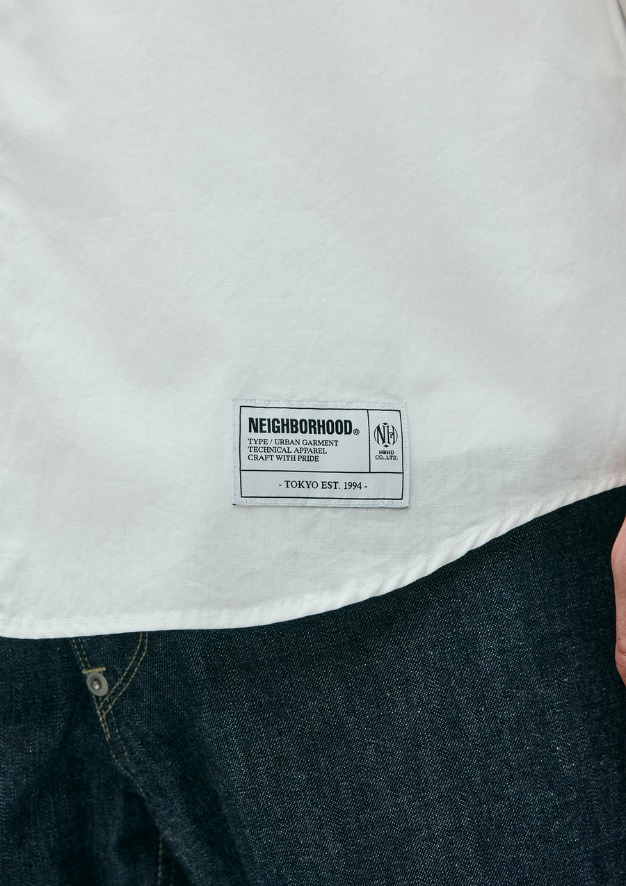 コットンブロード特有のさらりとした肌触りとハリコシを備えたトラッドシャツ。スプリットヨーク、脇裾の5角形ガゼット、最下ボタンの横ホール仕様、カフスのステッチなど定番のディティールを踏襲。ポケットにロゴを刺繍。オリジナルボタンを採用。左裾と下前立て裏にブランドタグ、脇接ぎにピスネームを付属。ワンウォッシュ仕上げ。
