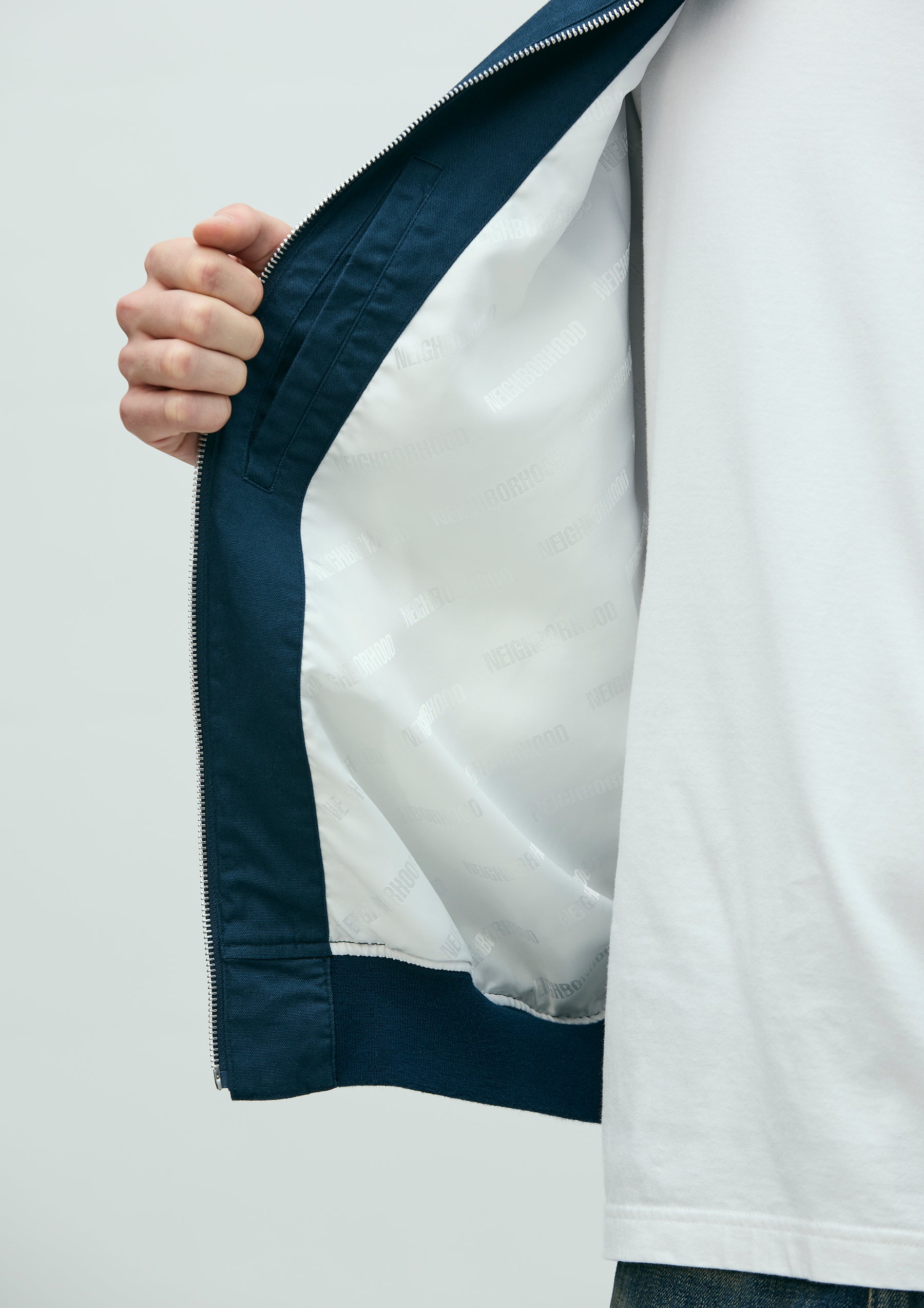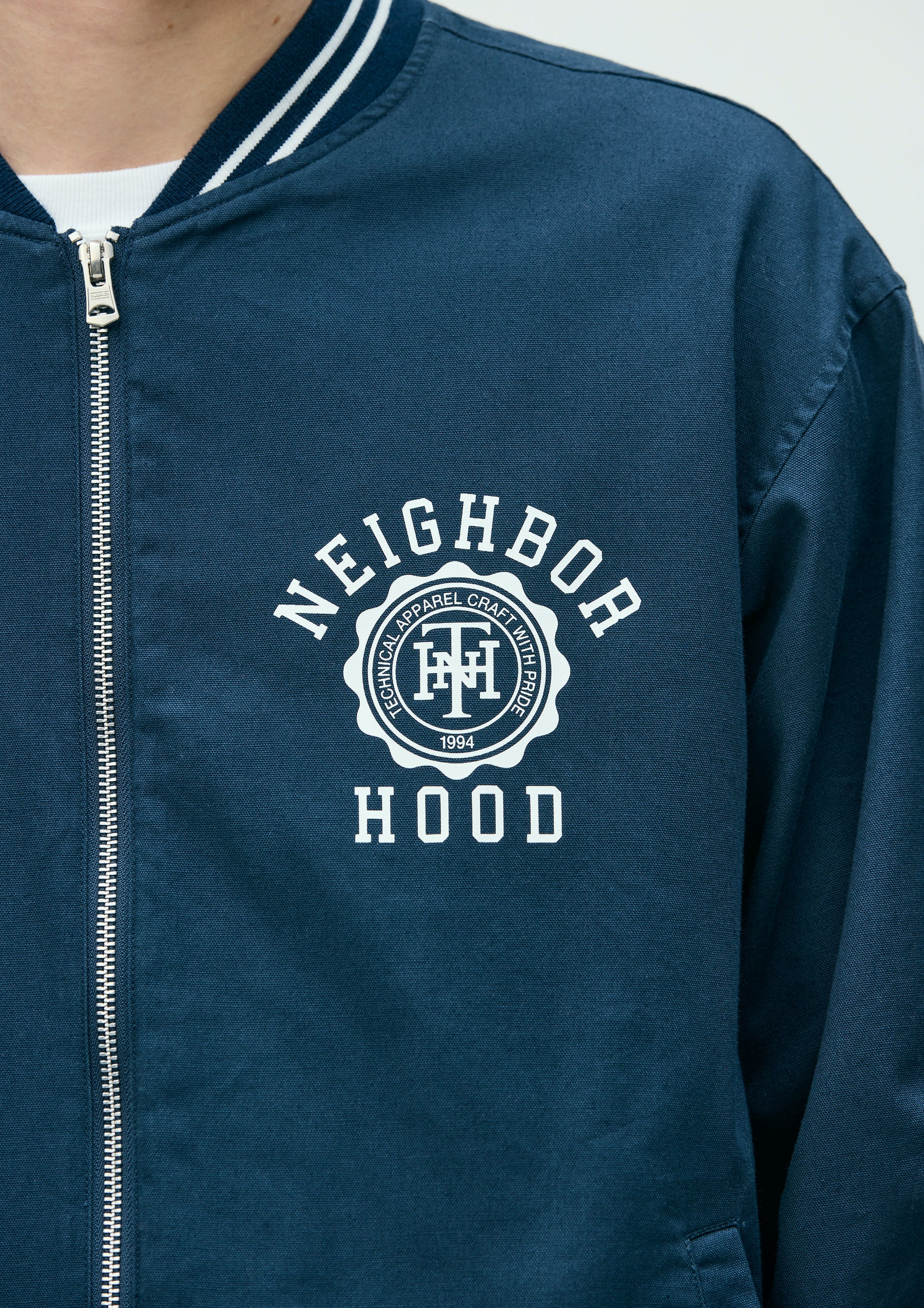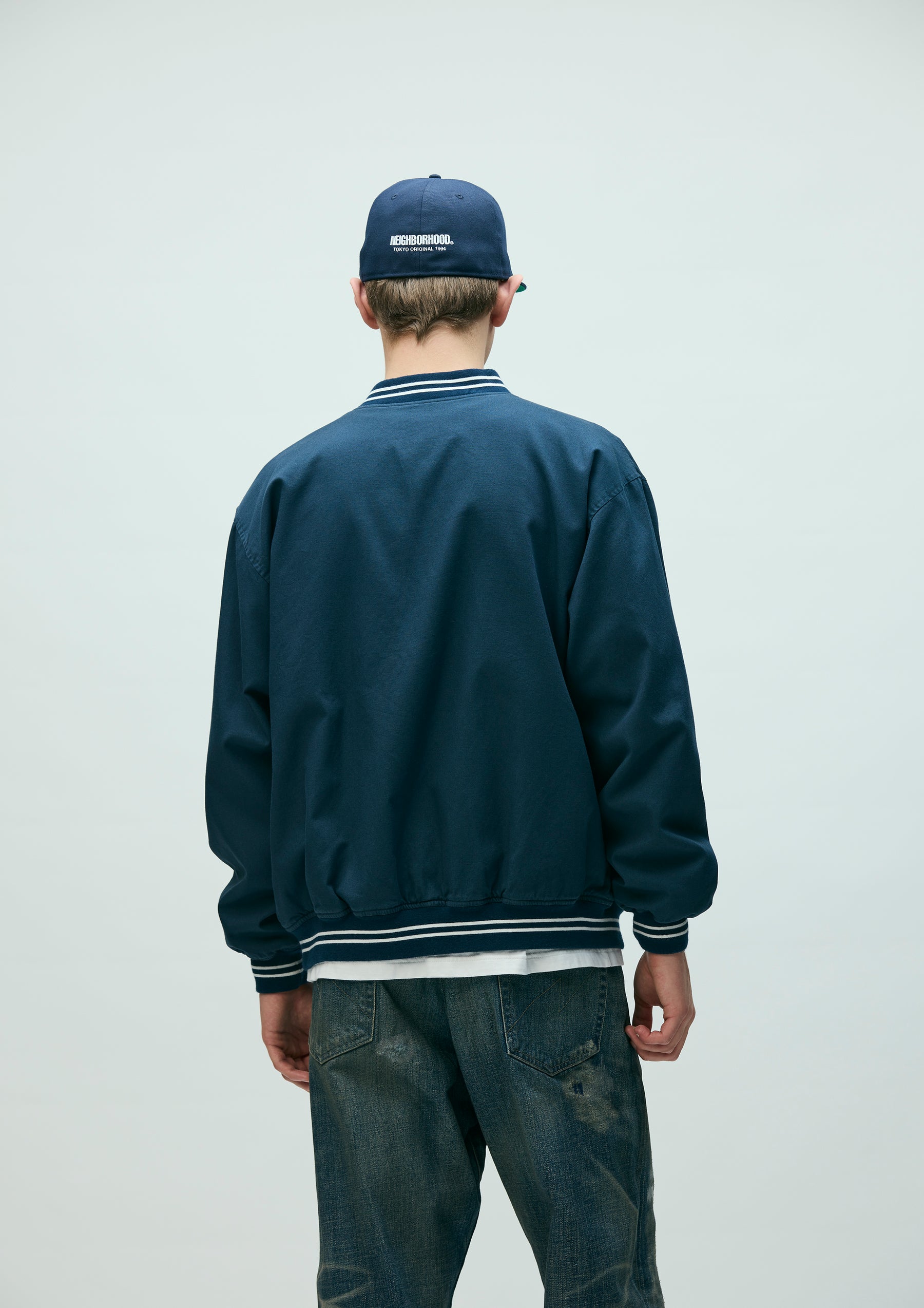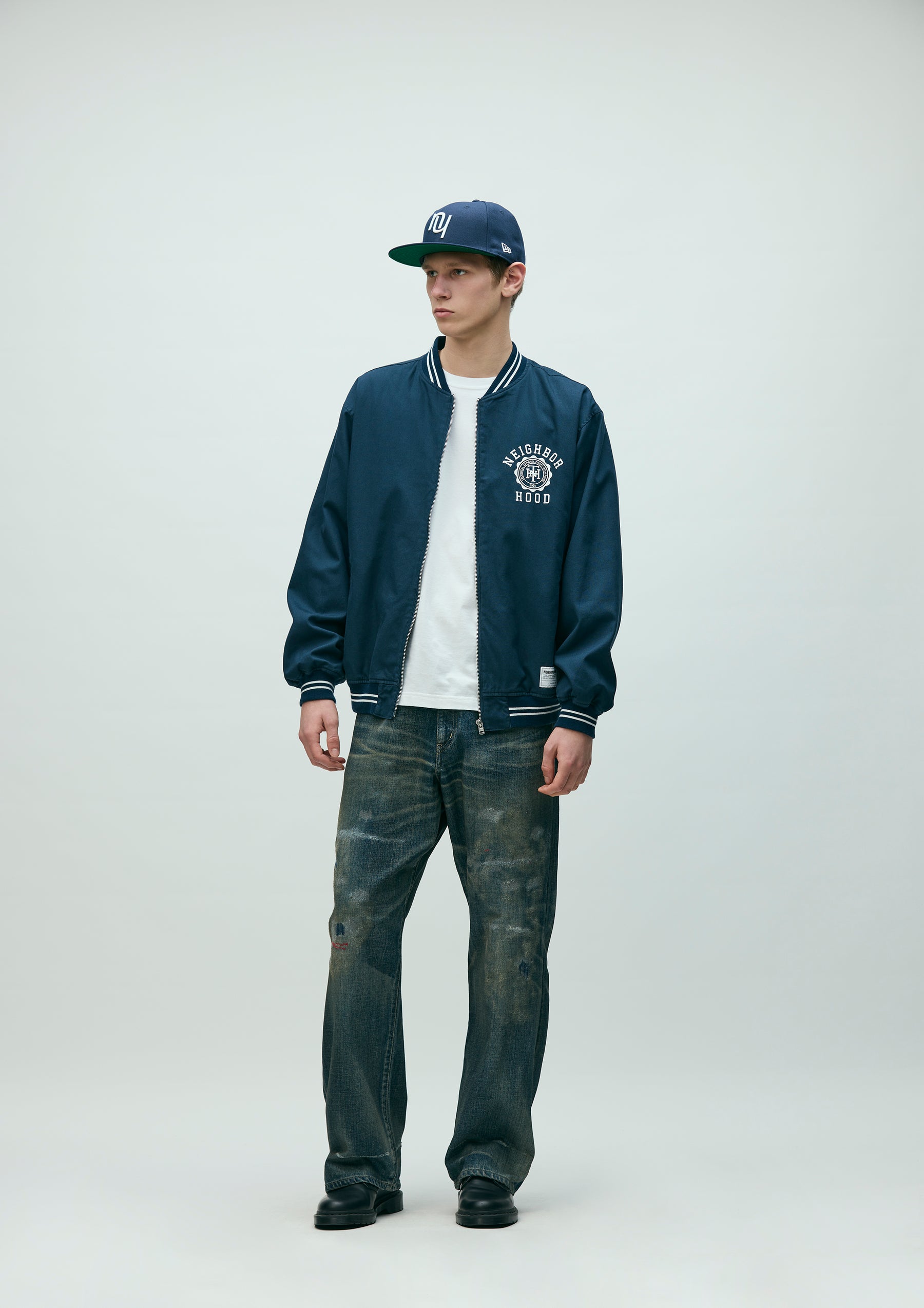 中肉厚のオックスフォード生地を使用したアワードジャケット。左胸にロゴをプリント。オリジナルのジッパープルを採用。左裾にブランドタグ、脇接ぎにピスネームを付属。オリジナルジャカード裏地。ワンウォッシュ仕上げ。