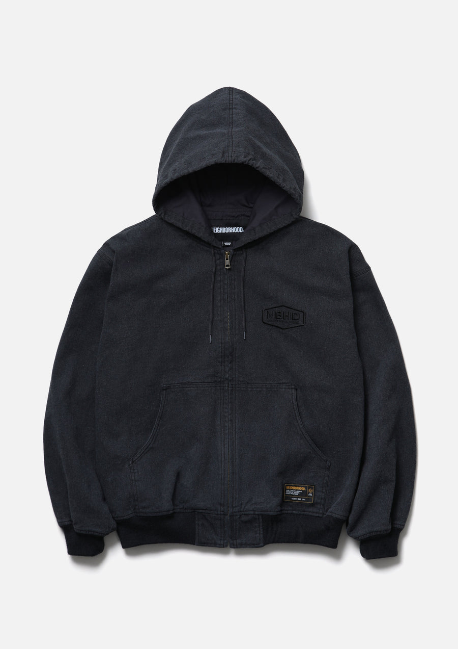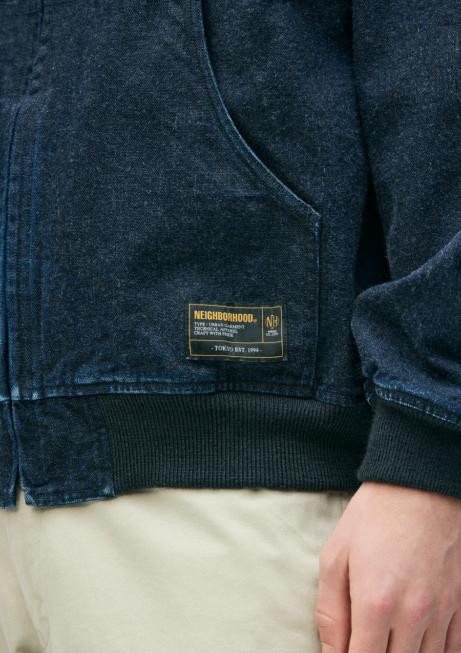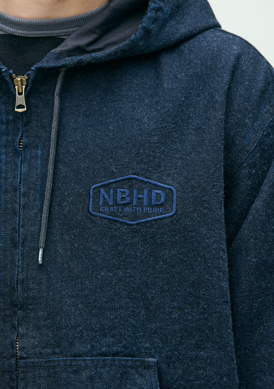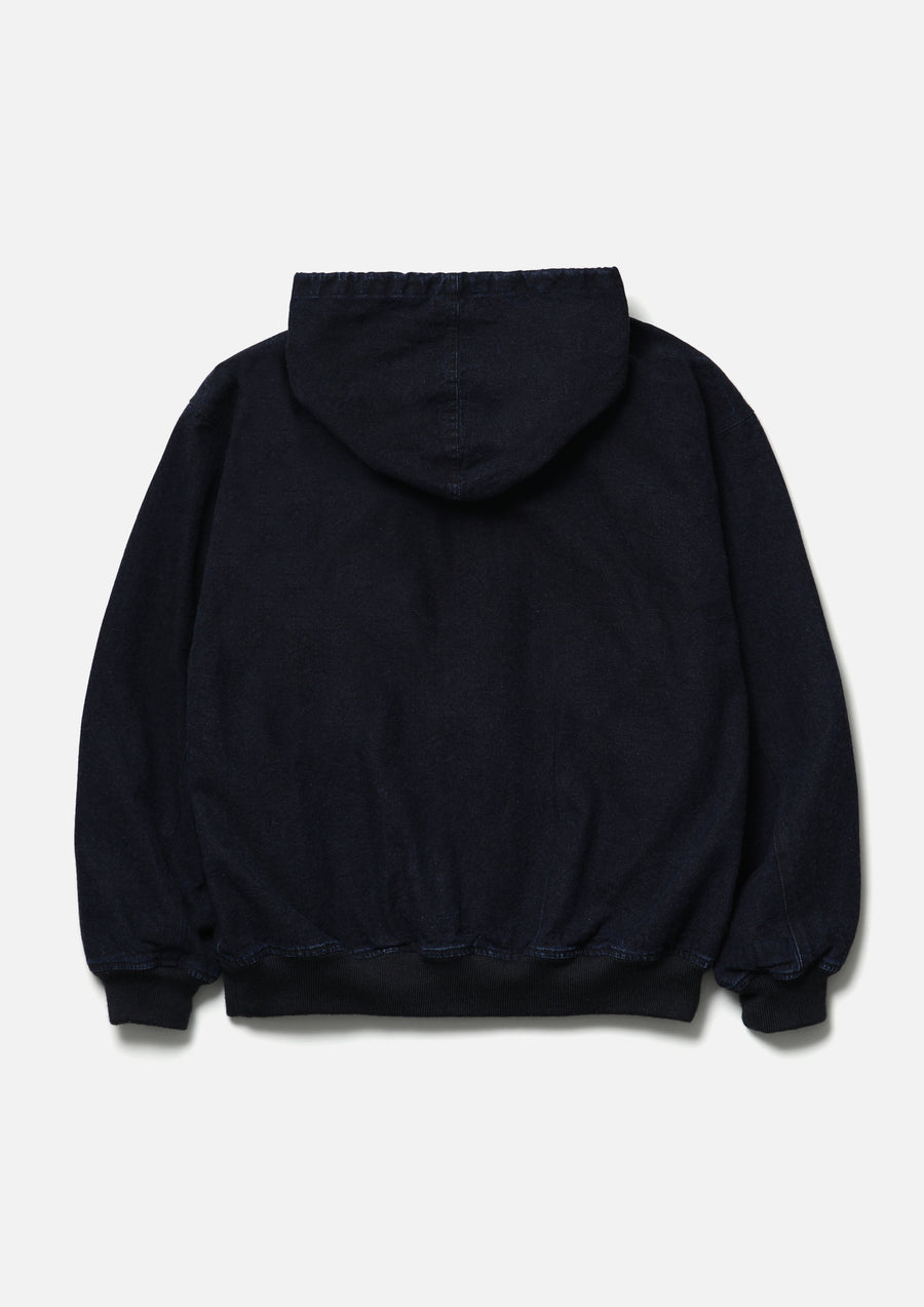 バイオストーンウォッシュ加工で自然な色落ち感を表現したオックス素材のジップフーデッドジャケット。左胸にロゴ刺繍を配置。オリジナルのジッパープルを採用。脇接ぎにピスネームを付属。袖通しの良いポリエステル/コットン混紡のウェザークロス裏地。