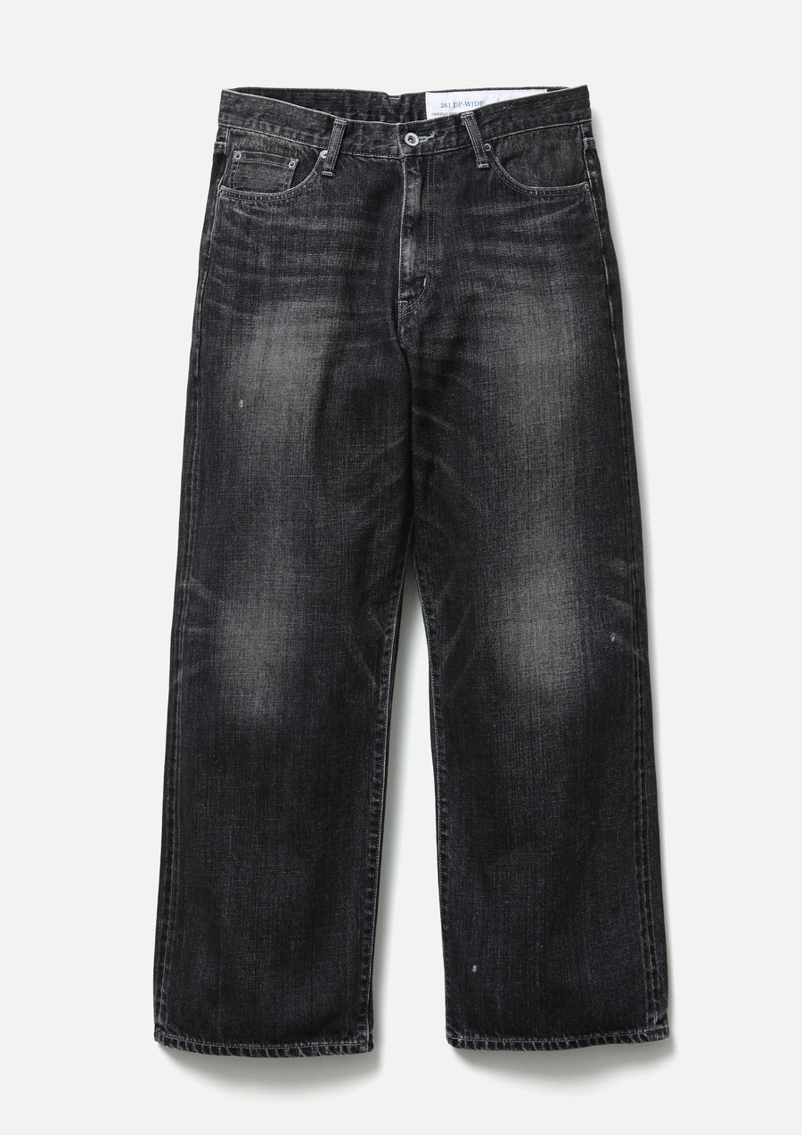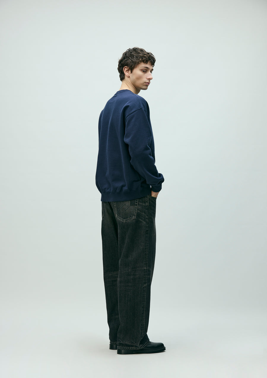 12oz.オリジナルデニムをベースにウォッシュド加工を施したデニムパンツ。セルヴィッヂデニム生地からボタン、リベットといったパーツに至るまで全てオリジナルで製作。フロントジッパーフライに忍ばせたシグネチャーテープやヒップポケットの”N”ステッチ、レザーパッチ等のディティール。カスタムクラフテッドアイテム専用のサイズネームを付属。ワタリ、ヒップ、裾幅をかなりゆったりとさせたワイドスレートシルエット。