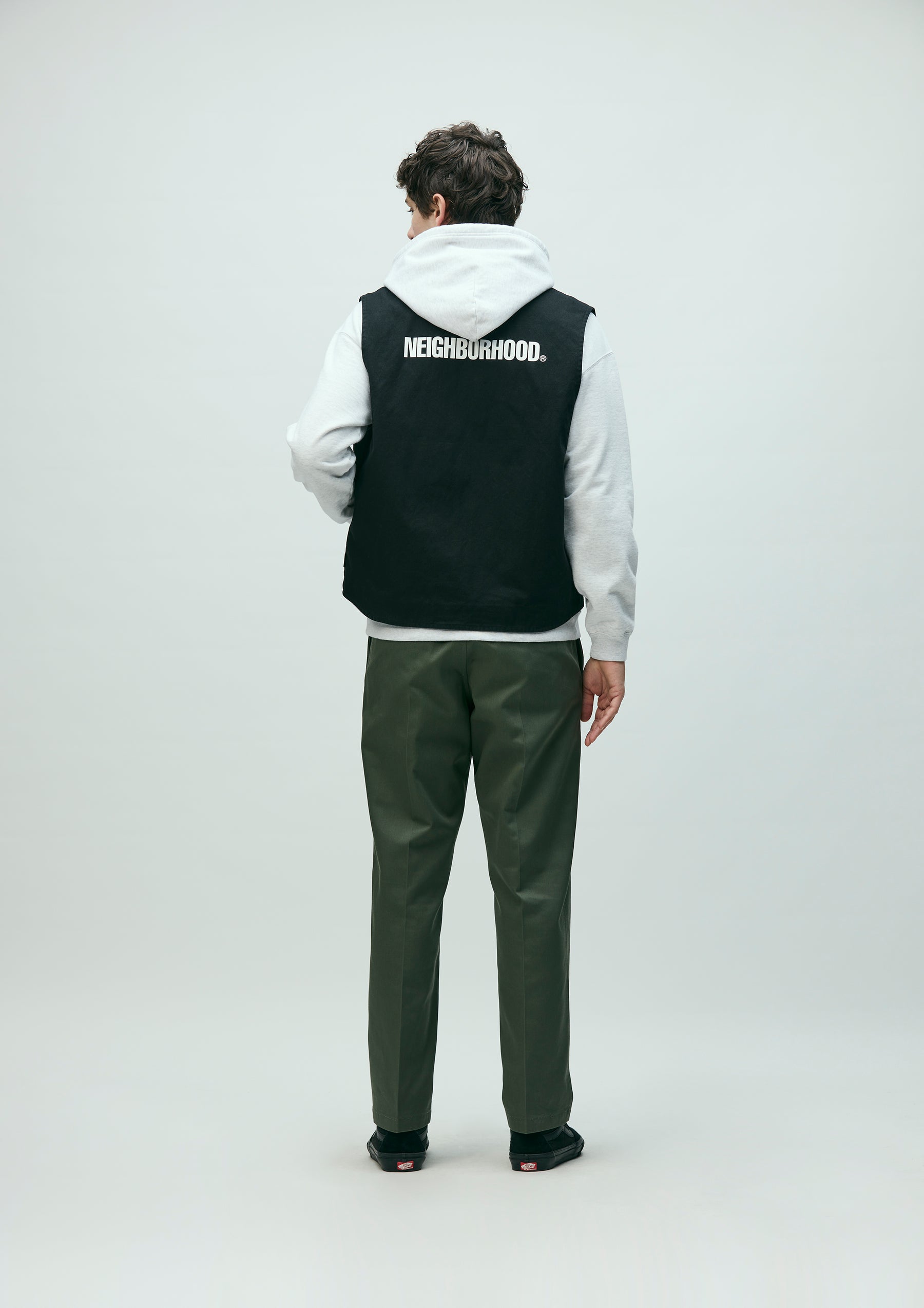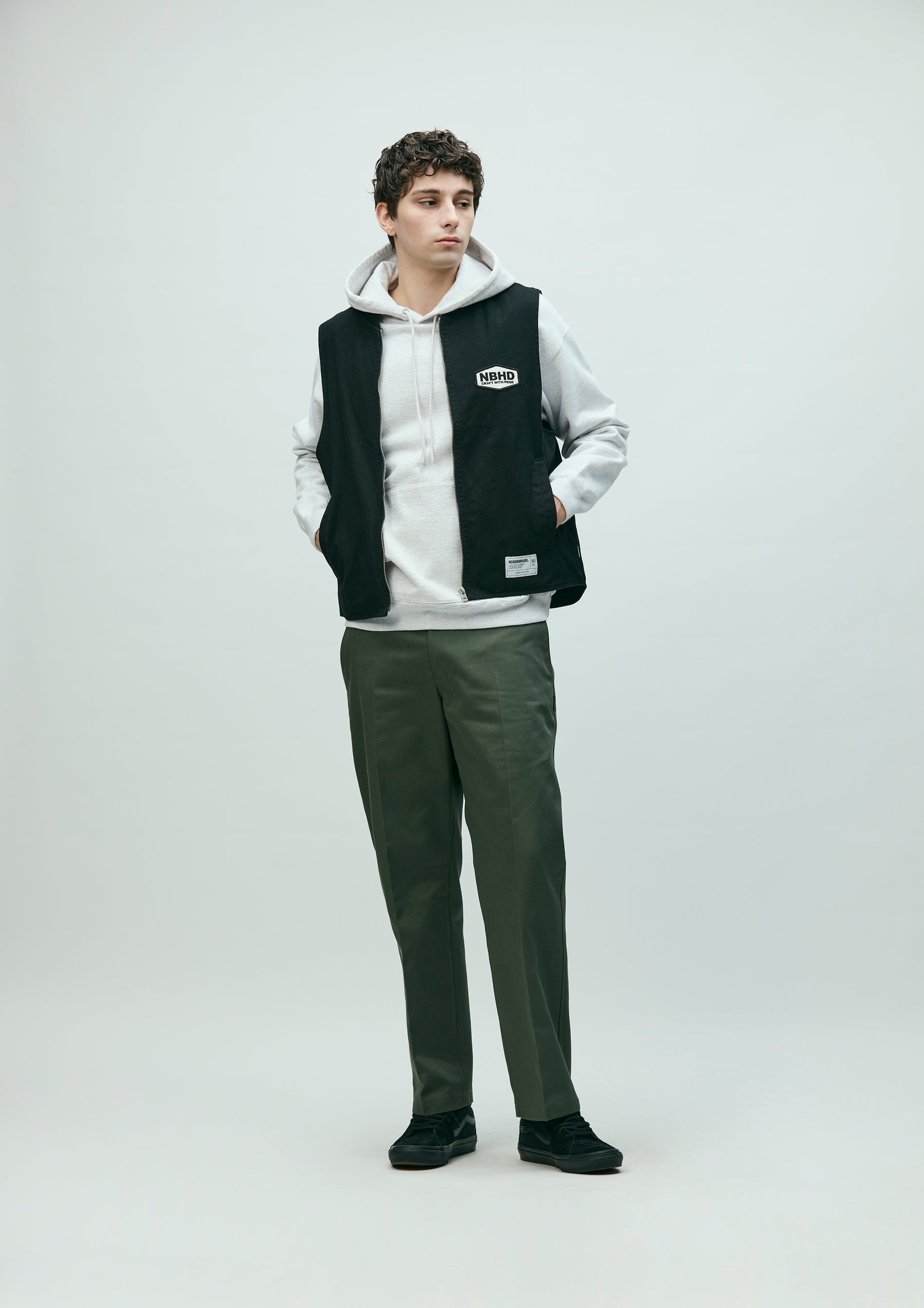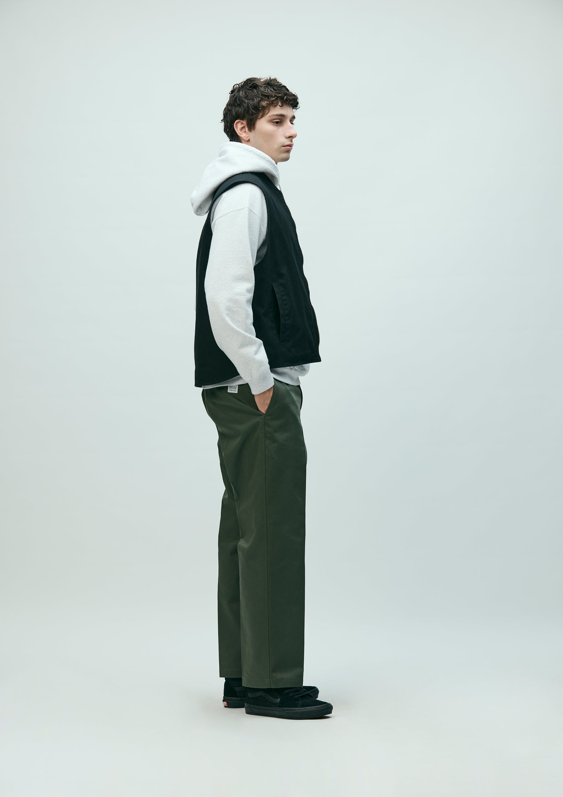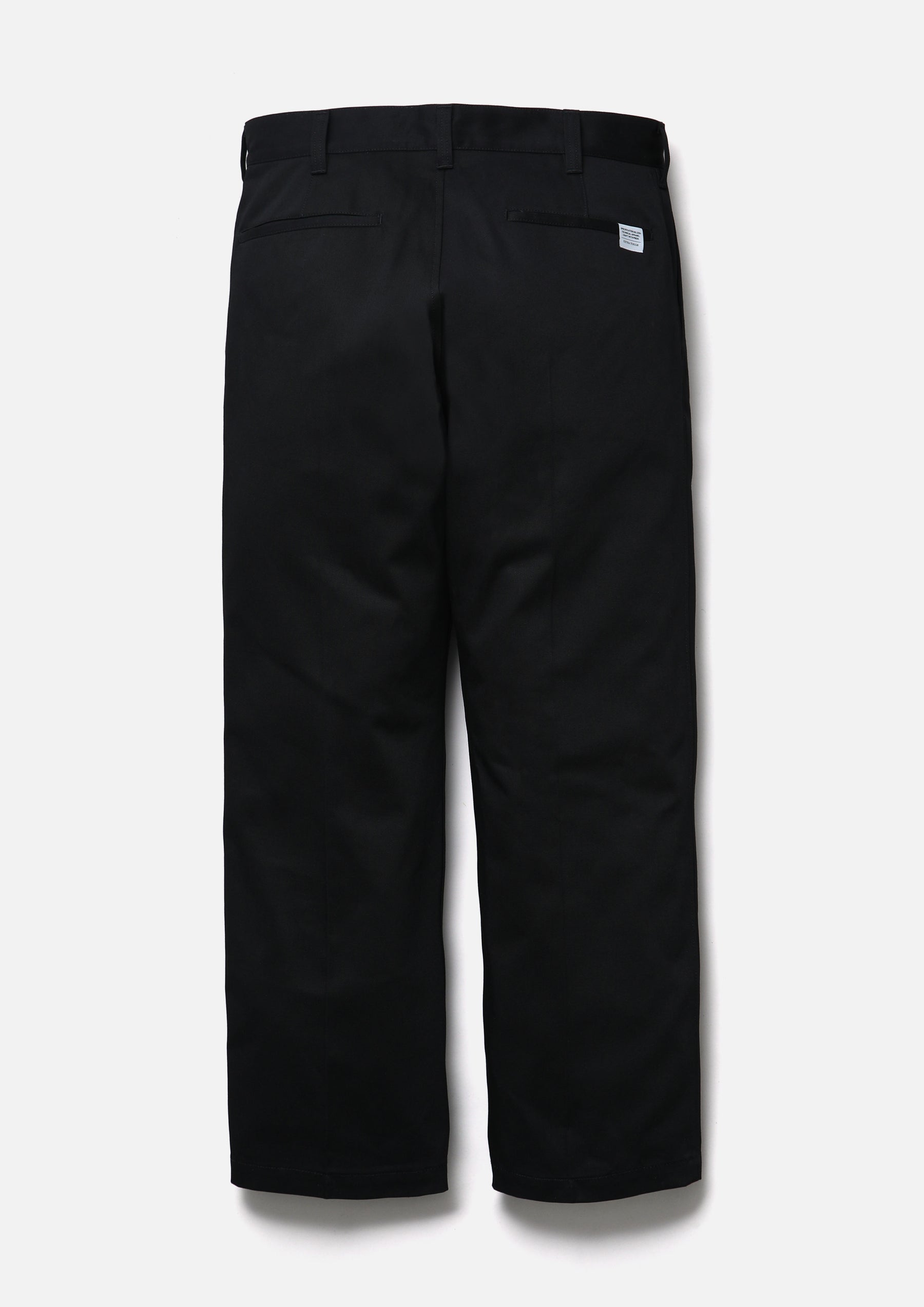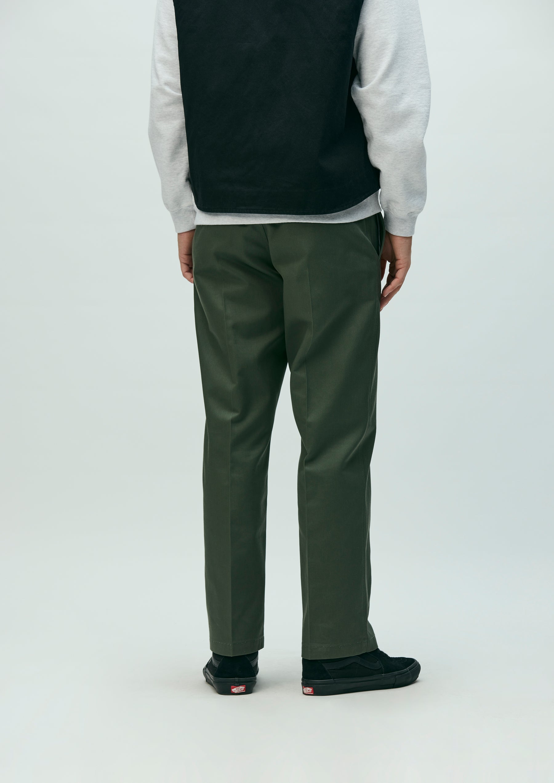 ポリエステル/コットン混紡糸で織り上げた、タフなカツラギ生地のスリムストレートワークパンツ。すっきりとしたスリムシルエット。オリジナルのスナップボタンとスレキ生地を採用。バックポケット口にブランドタグ、脇接ぎにピスネームを付属。